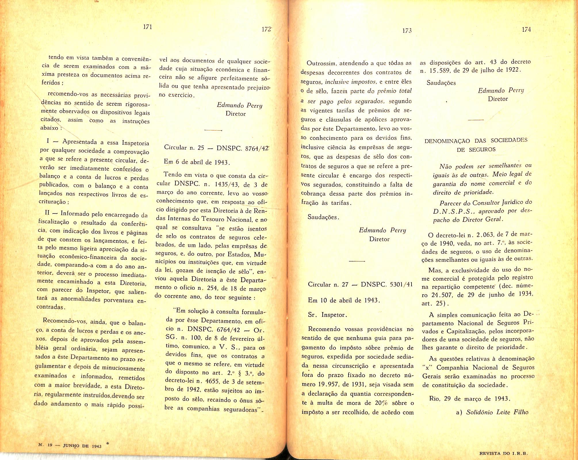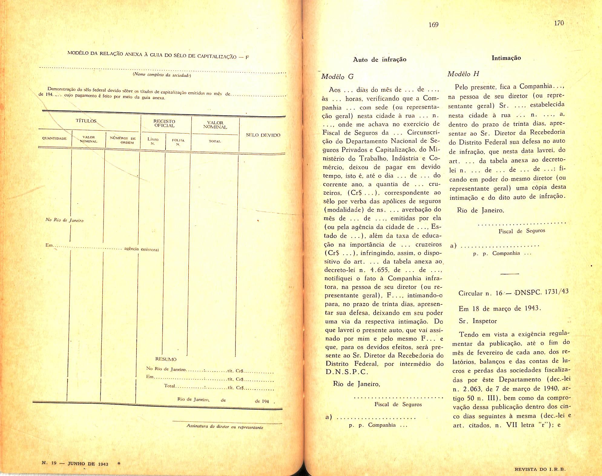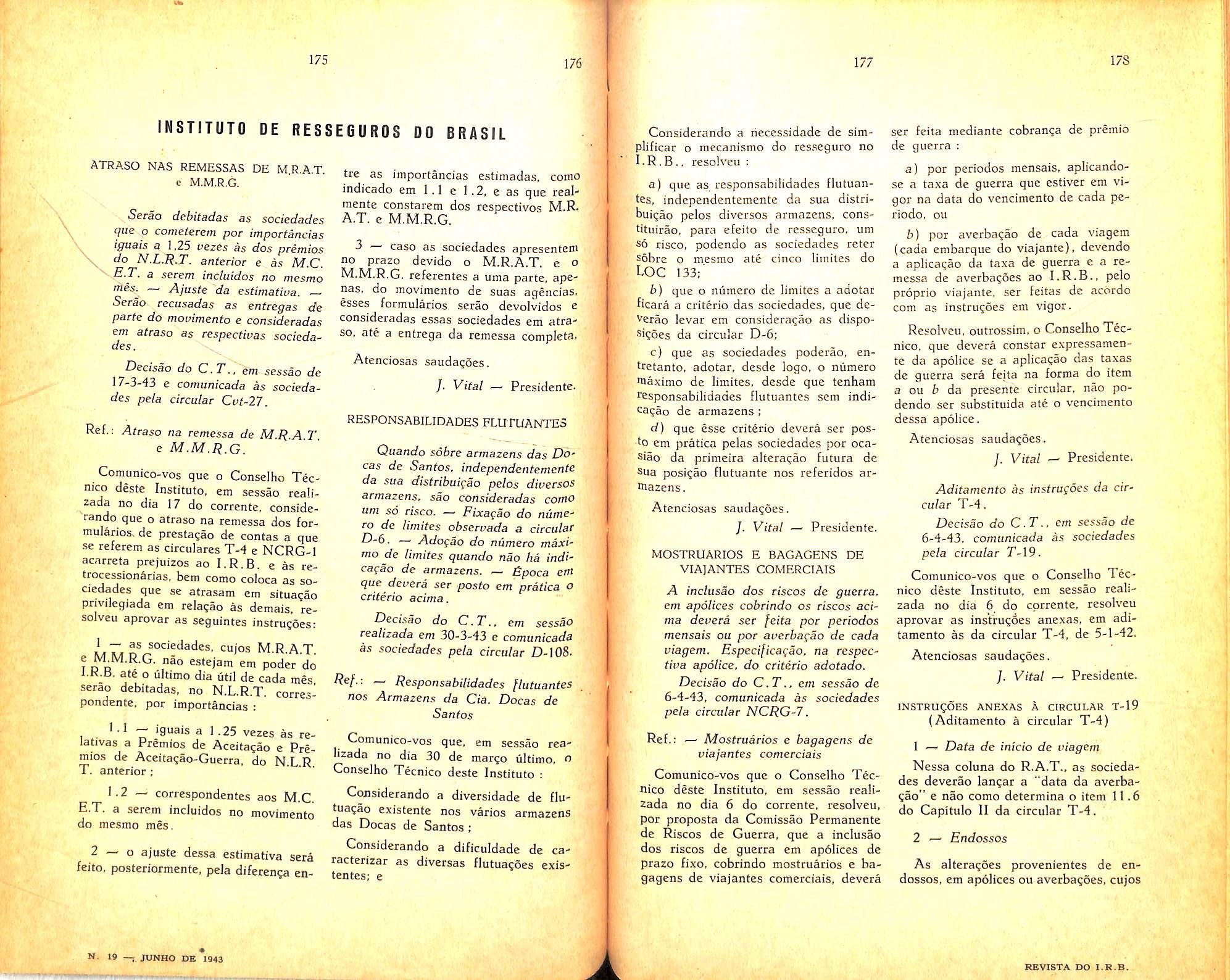 N. 19 — JUNAO de 1943 REVISTA DO I.R.B.