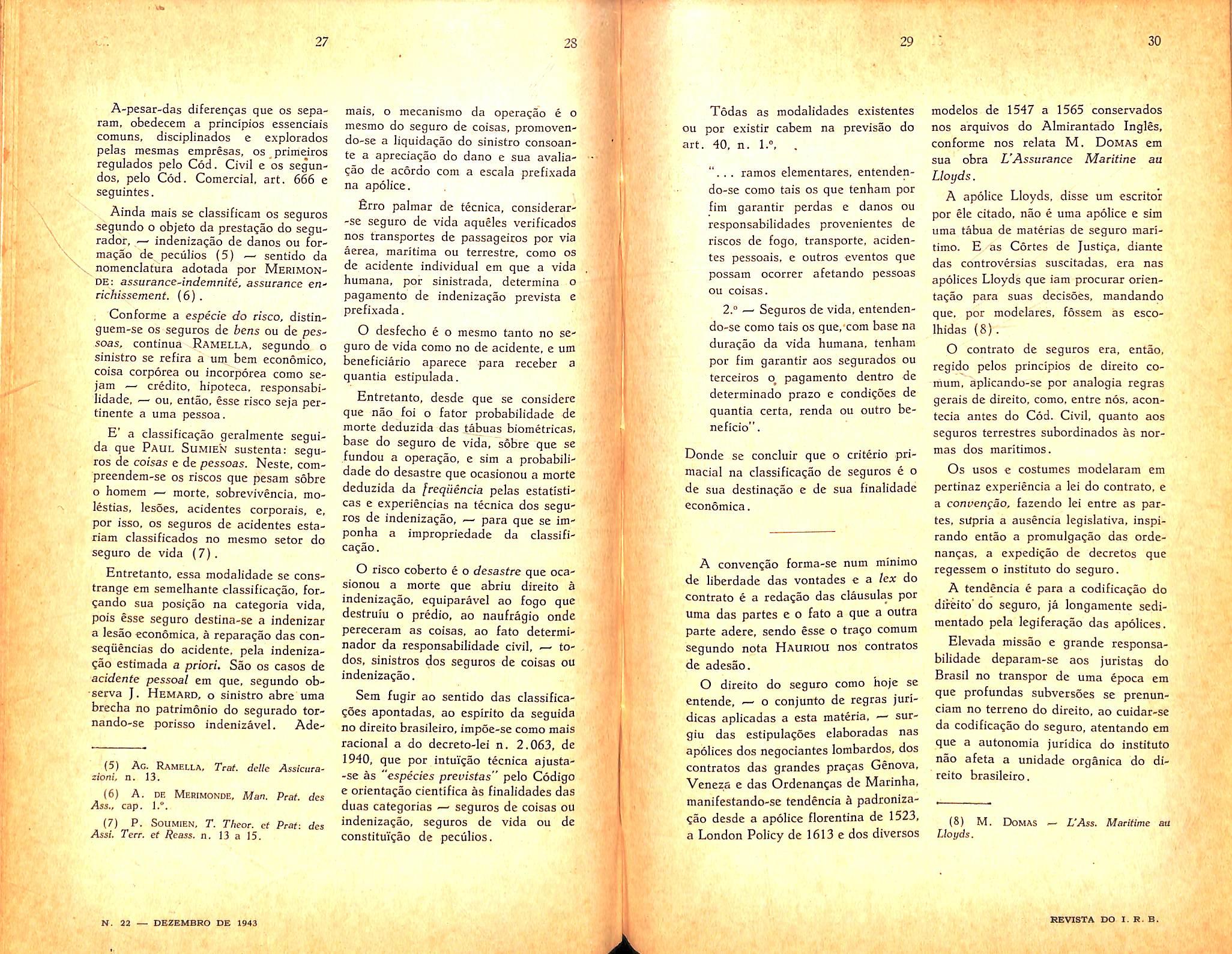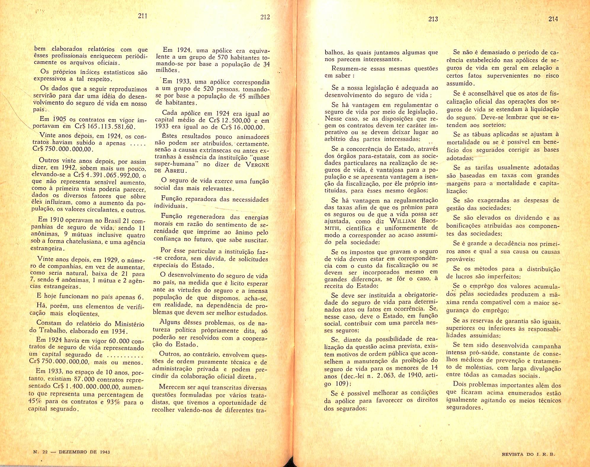 United States: The insurance business in the ... — JoSo de Oliveira Santos; n. 21, col. 95/98; n. 22, col. 185/190.