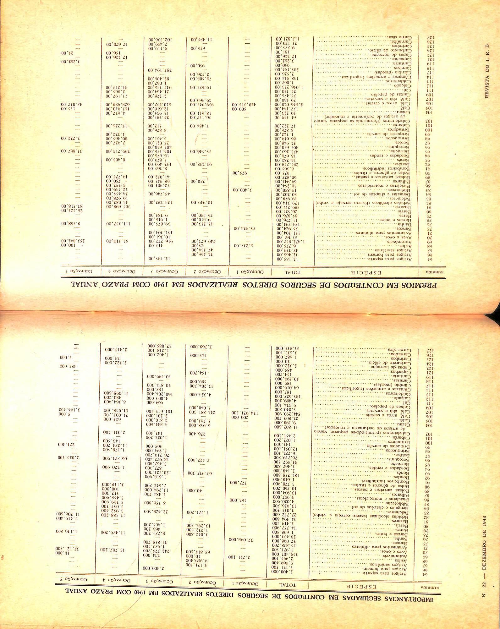 Statistical data over: 1940 (general) — n. 22 — col. 103/166.