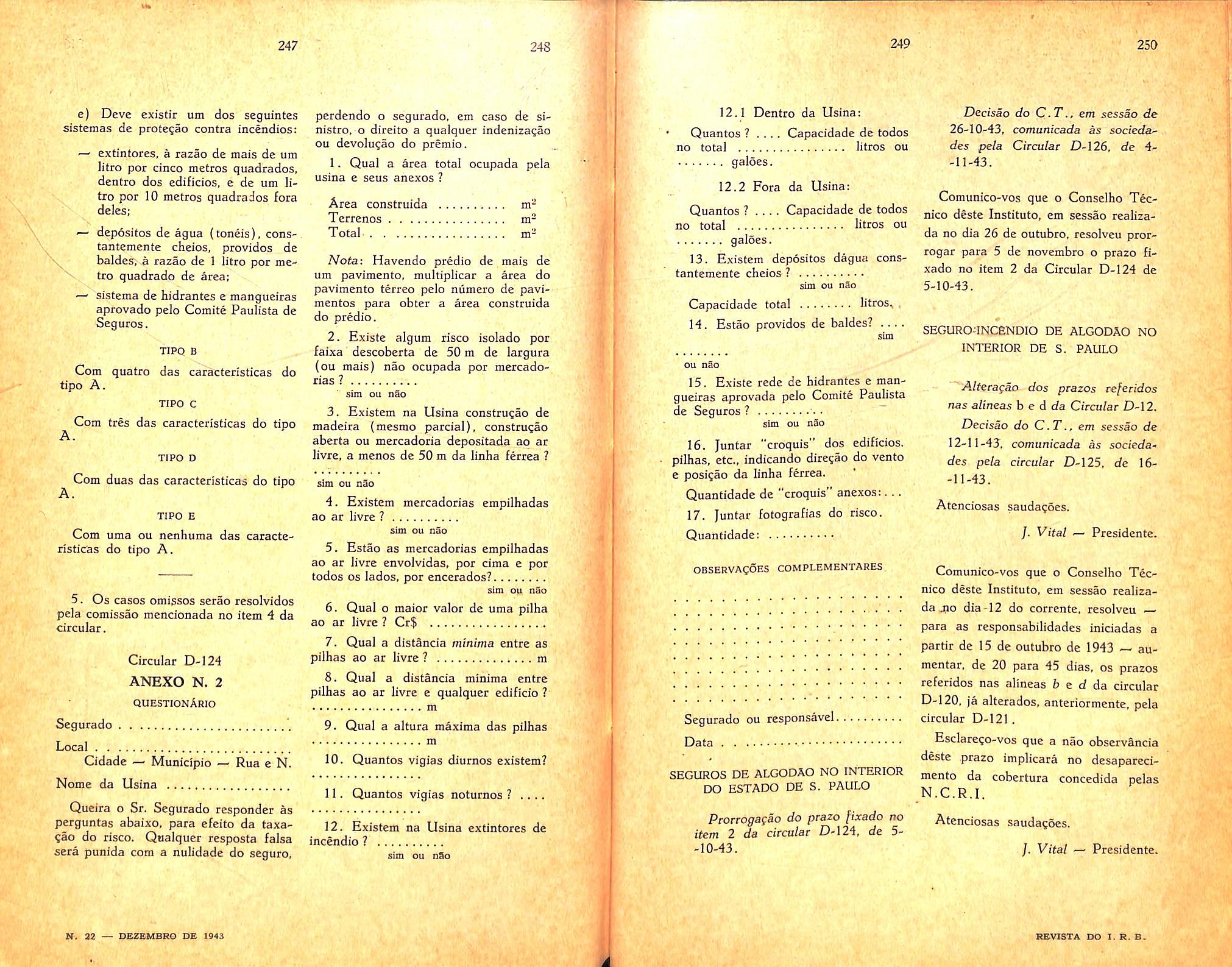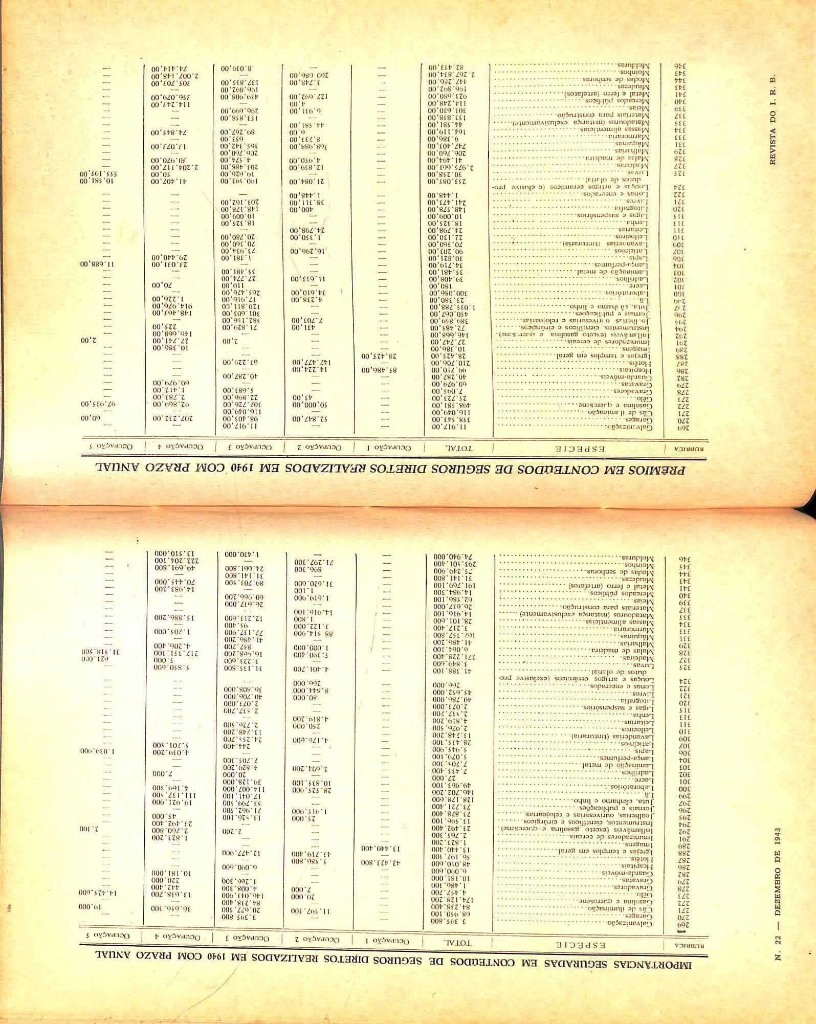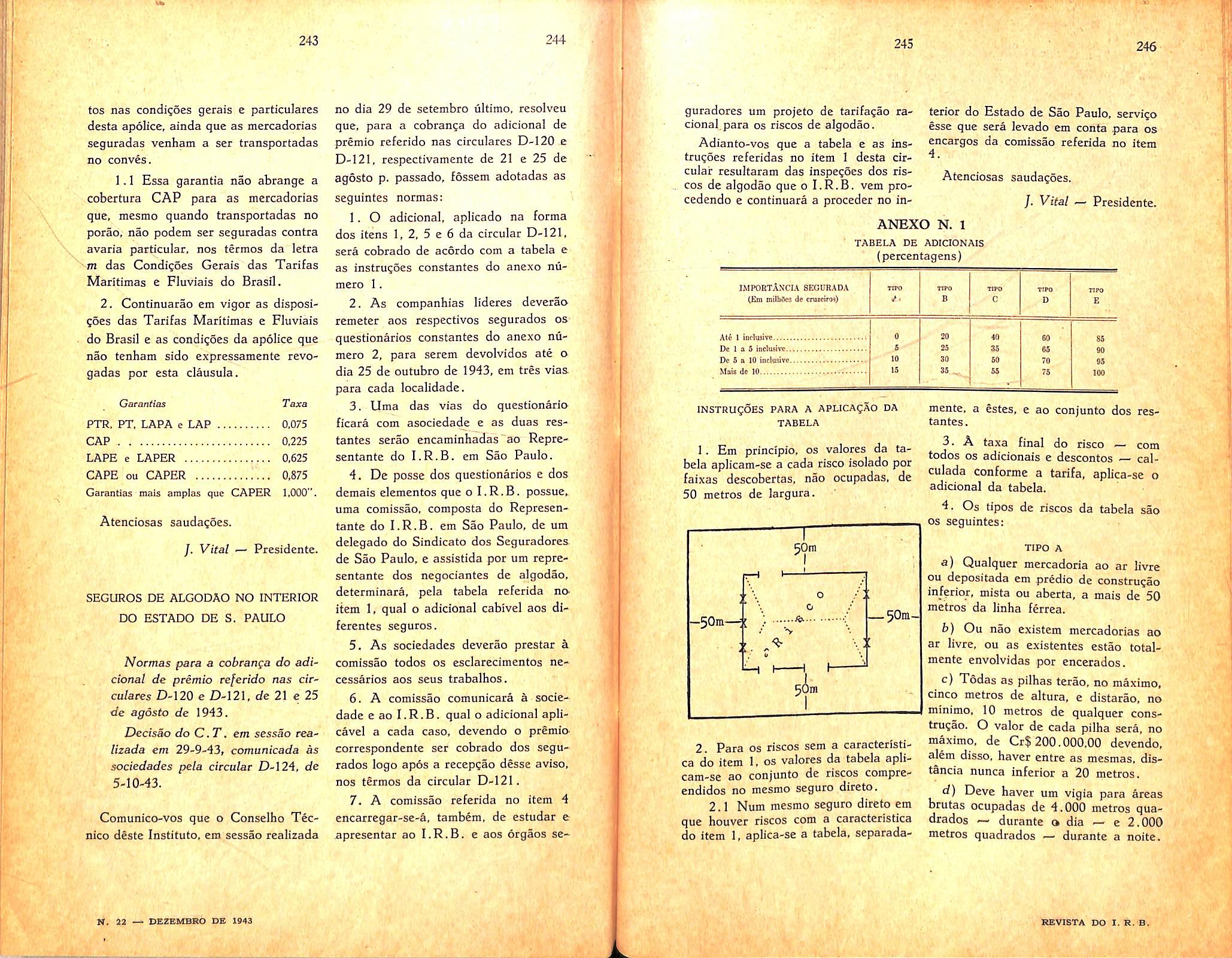 Con-solidation of the regulations, instructions and circulars of the I.R.B. — See; IRB. Cotton Concentrations and fires in the Stale of S. Paulo — n. 21. col. 9/14. Determination of the sale value of goods: — Sec goods. Explosion; The risk of. — Sec; Fire Insurance.