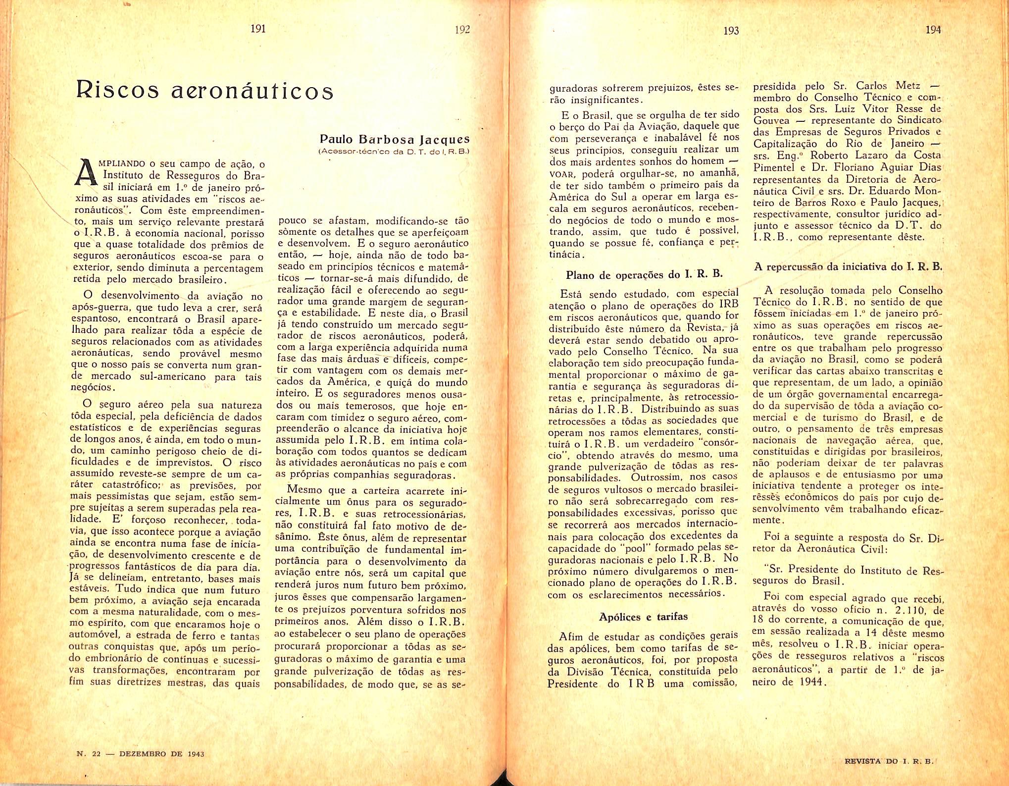 Riesgos aeronauticos — Paulo Barbosa Jacques — n. 22 — columnas 191/200.