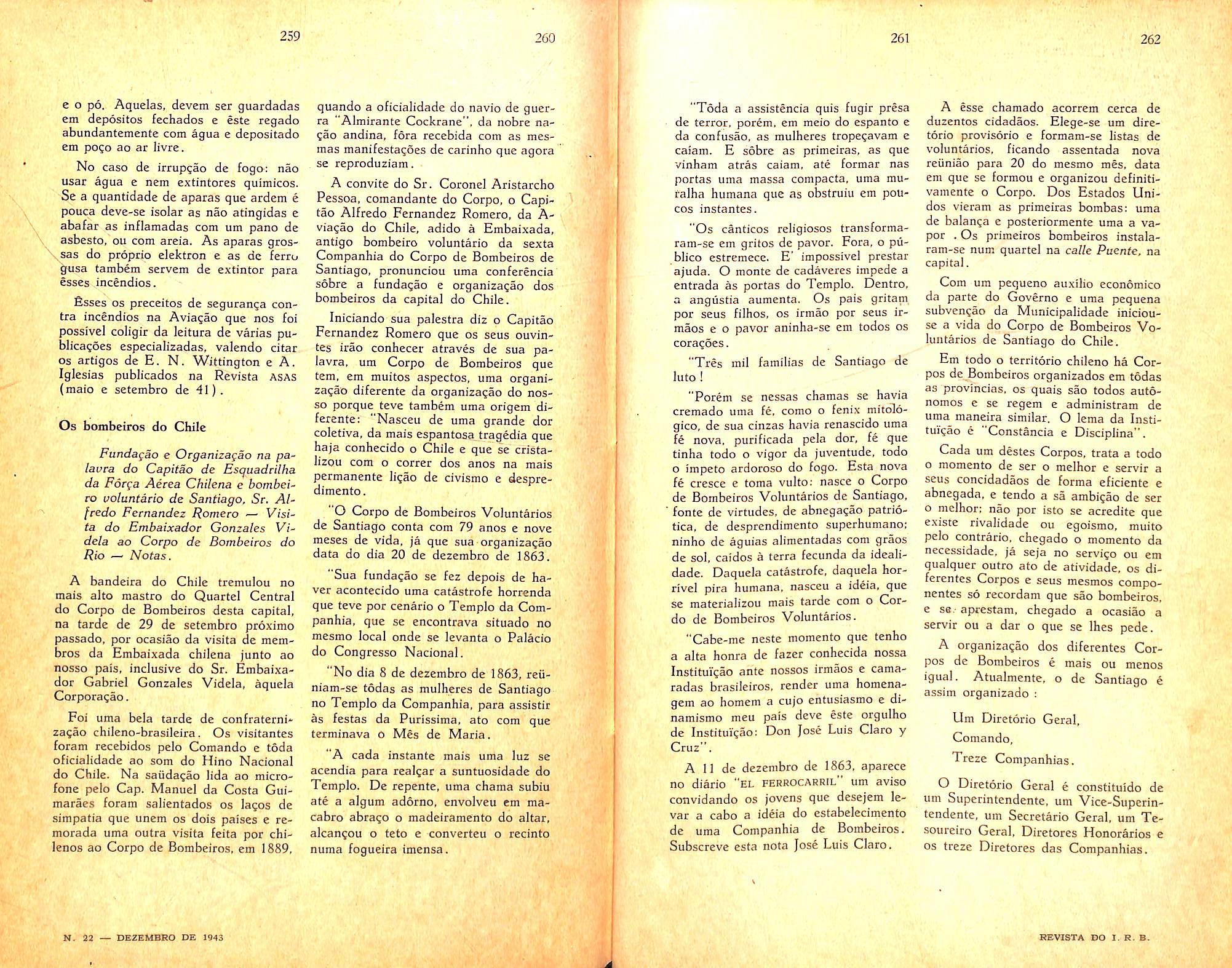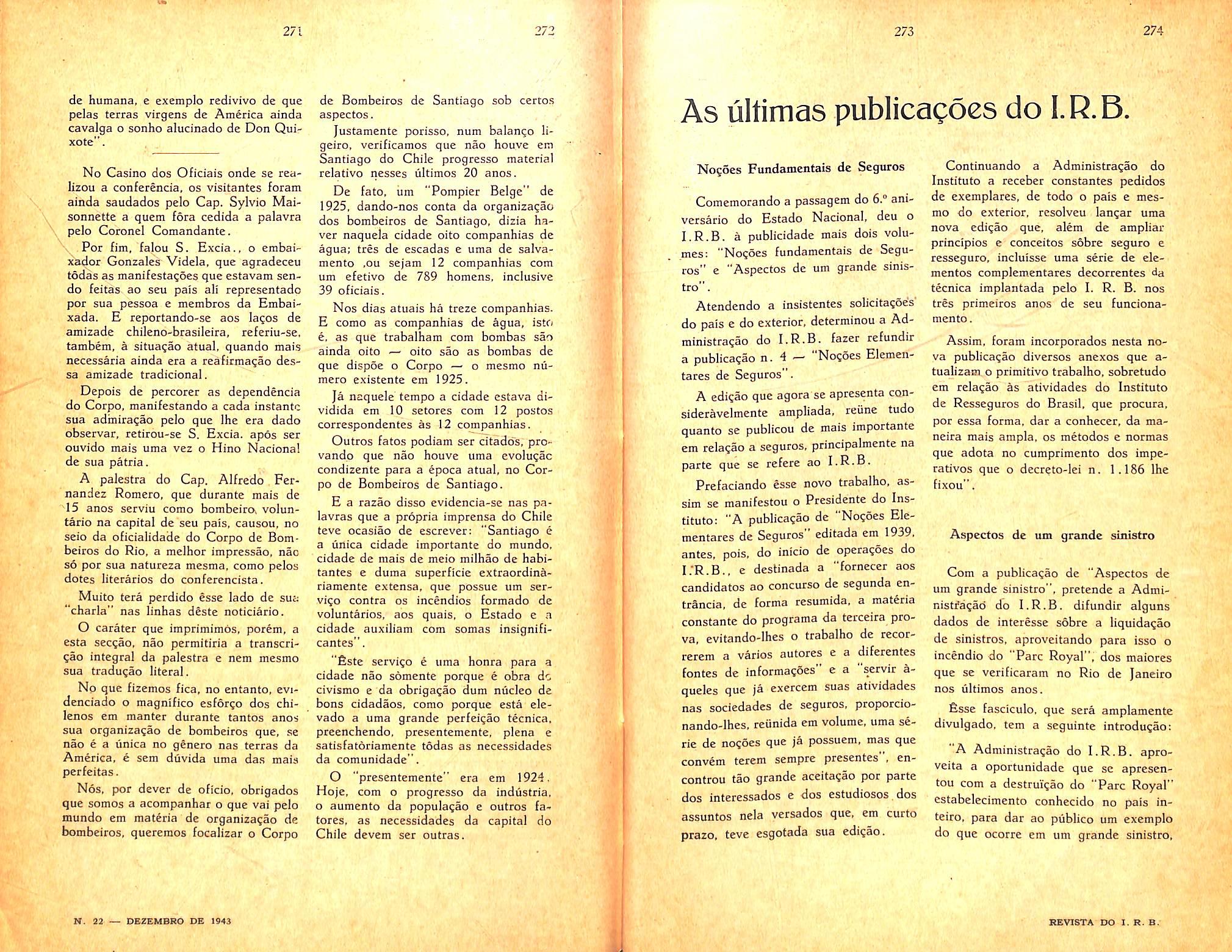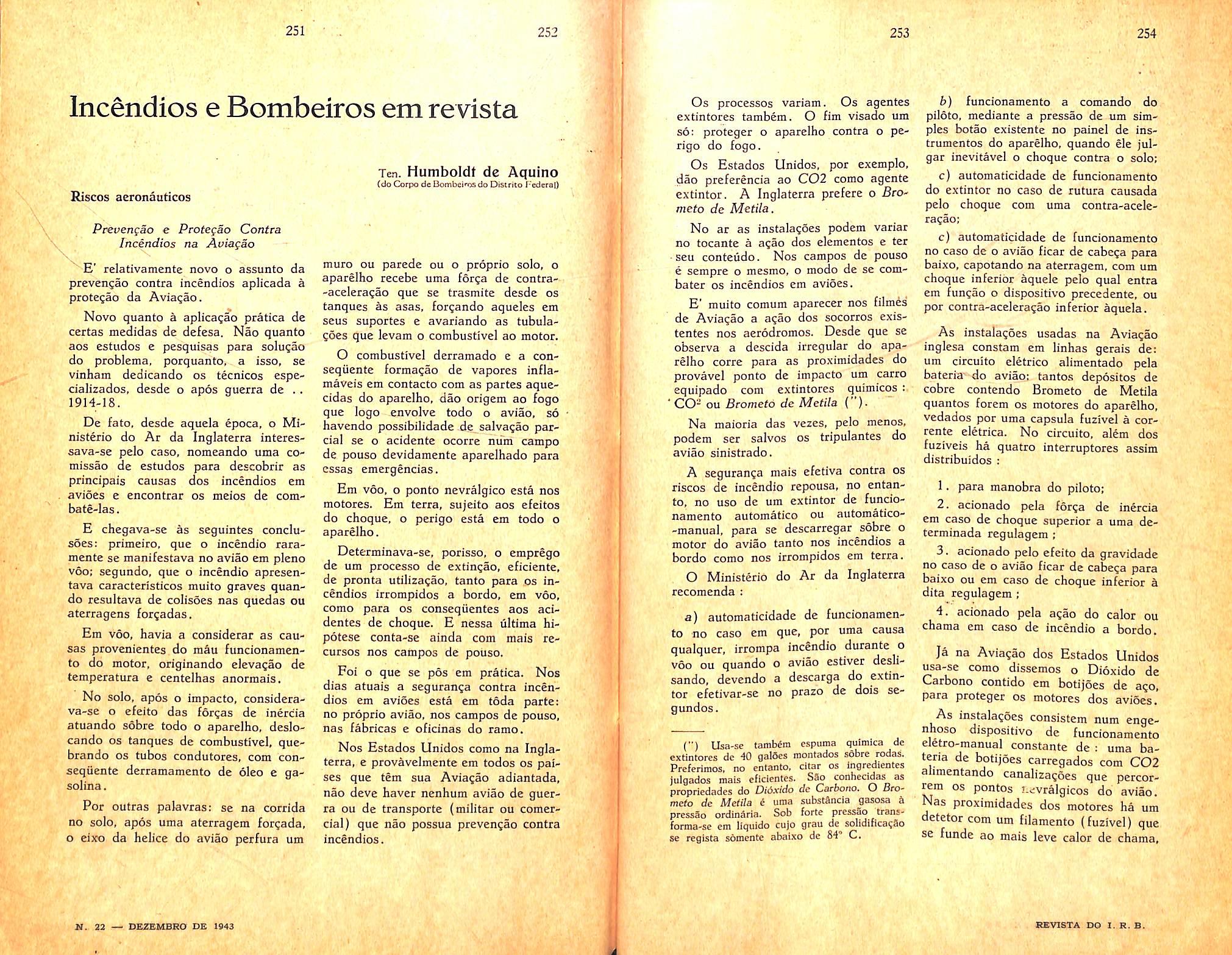 Fire Prevention; Educational course — Fire-lieutenant Humboldt de Aquino; n. 17, col. 121/130; 18. col. 111/128; 20, col. 93/98; 21, col. 107/122.