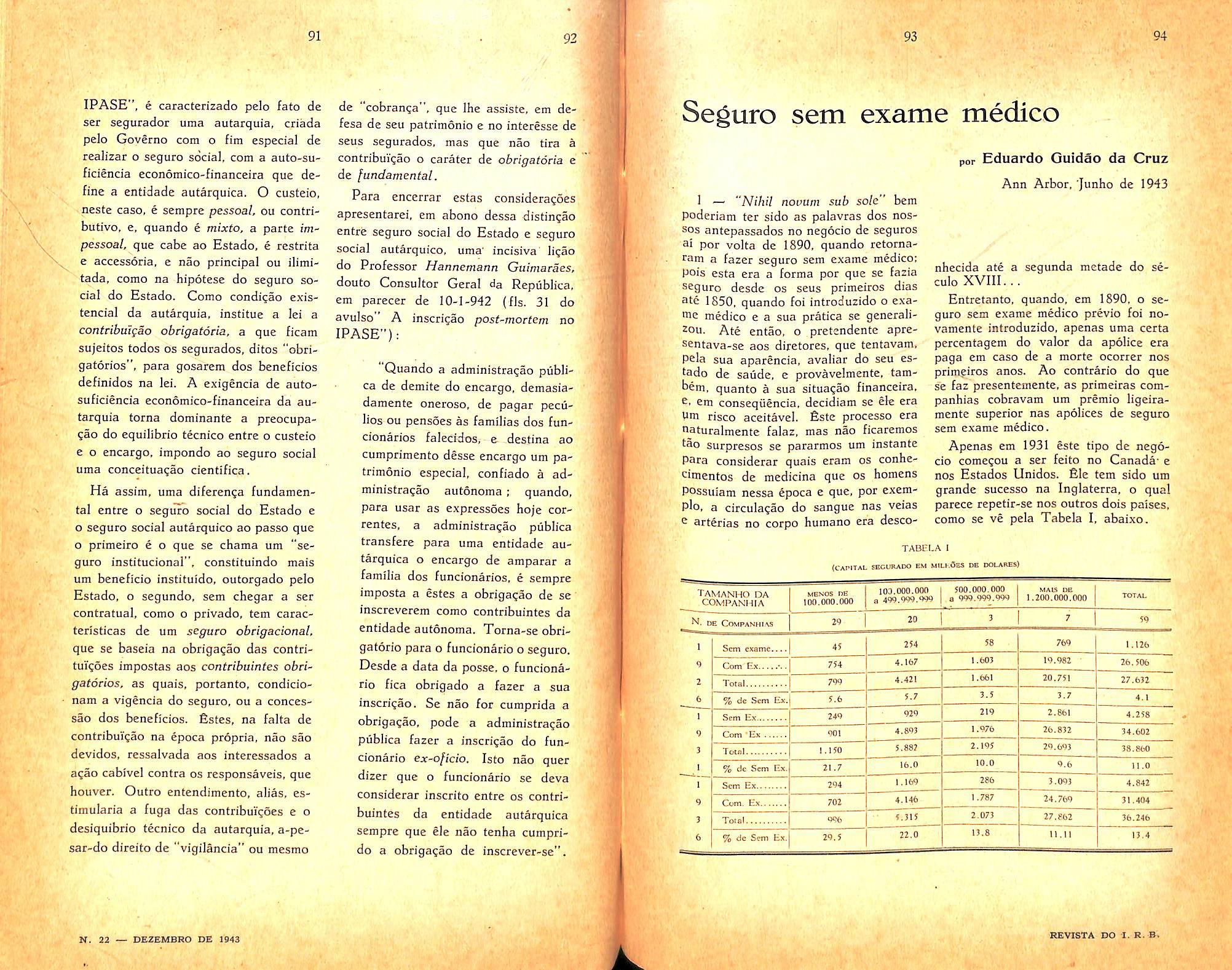 Seguros de vida en el IPASE — Jose Augusto Seabha — n. 22 — columnas 81/92.