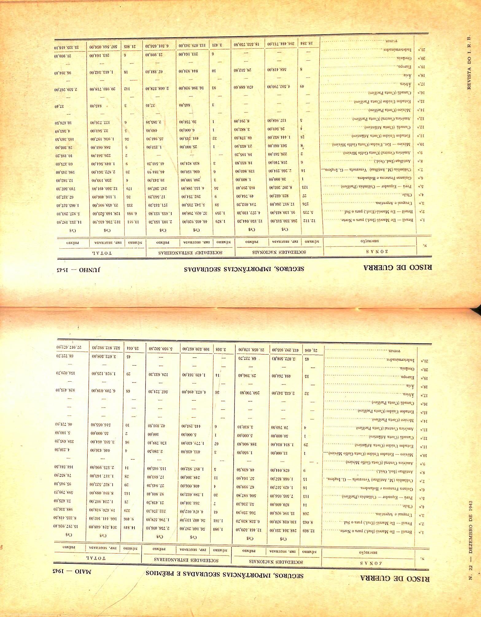 Statistical data: War risks — n. 21 col. 79/94; n. 22. col. 167/182.