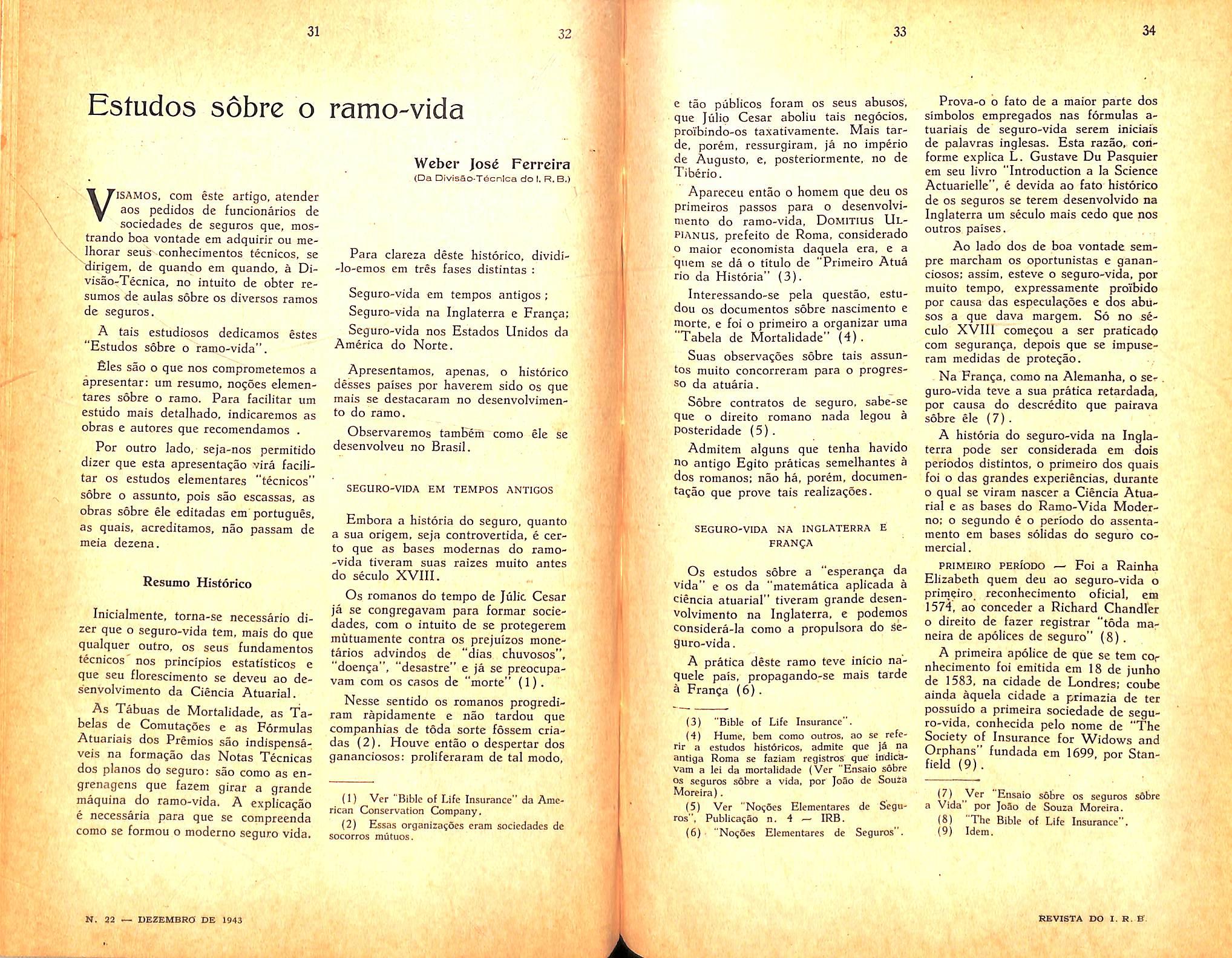 Life Insurance: A study — Weber Jose. Ferreiba; n. 22. col. 31/44.