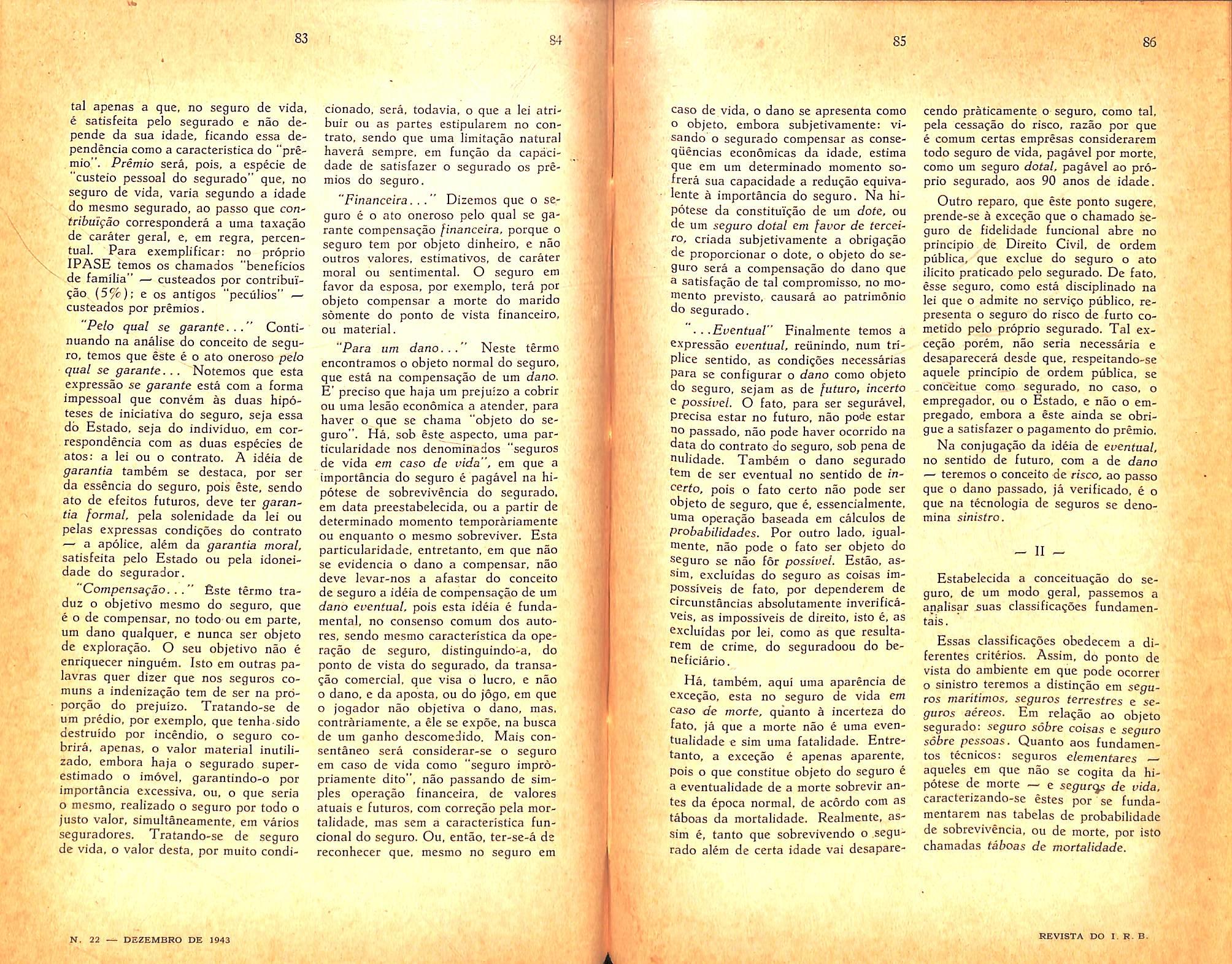 Life Insurance; its position in the new doctrinal schemes — Jose Pereiba DA SlLVA; n. 21, col. 21/28; n. 22. col. 209/222.