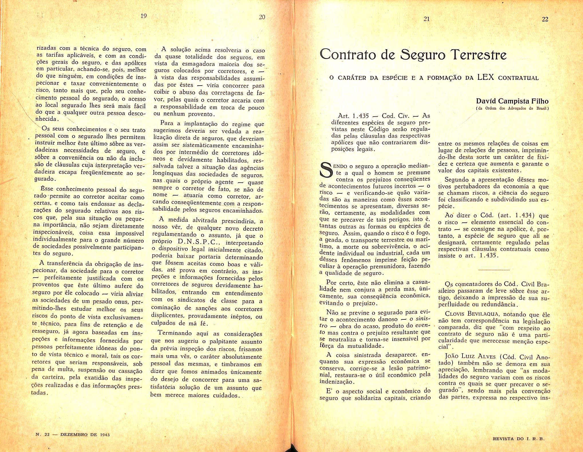 Insurance contracts - character and formation _ David Campista Filho- n. 22 col. 21/30.