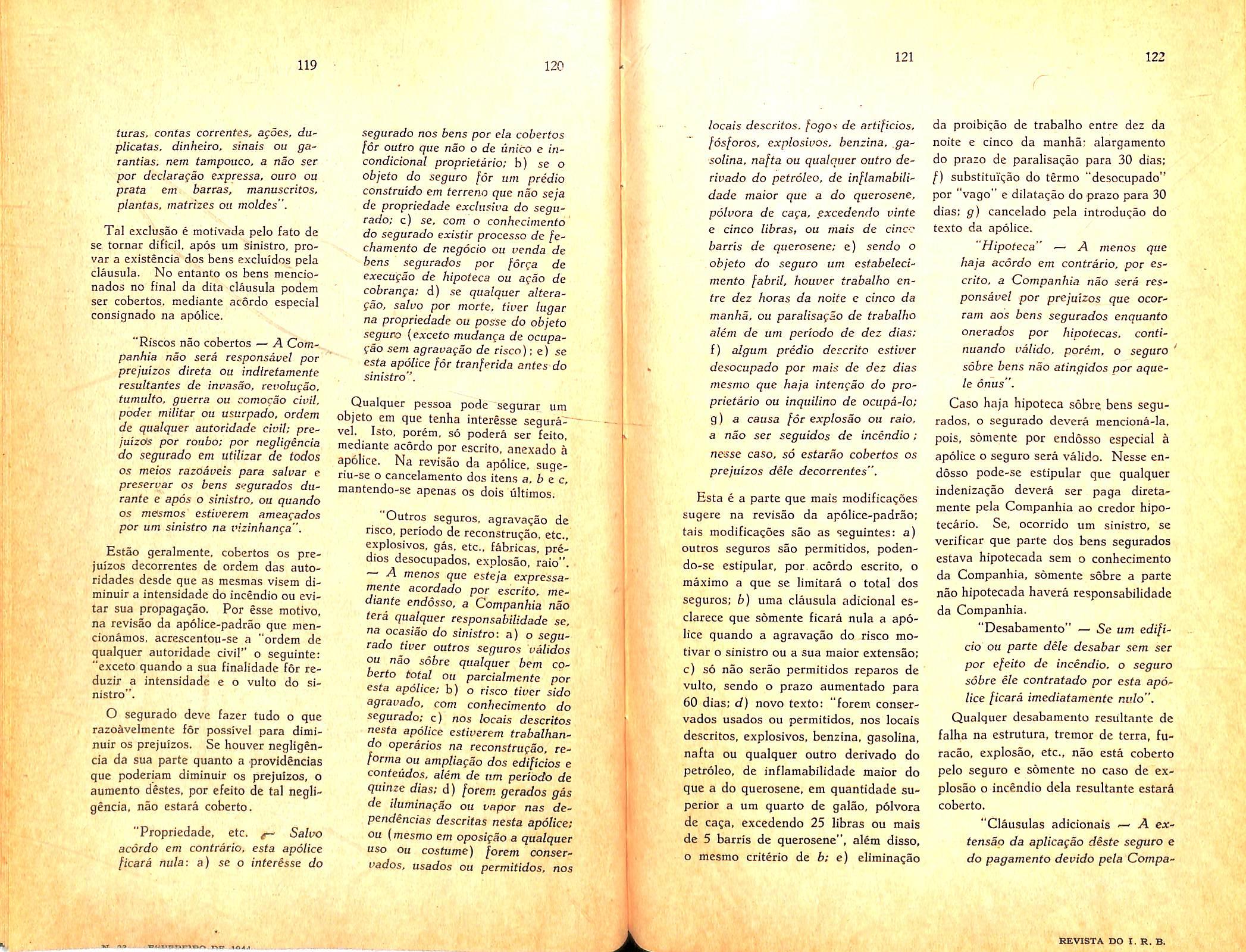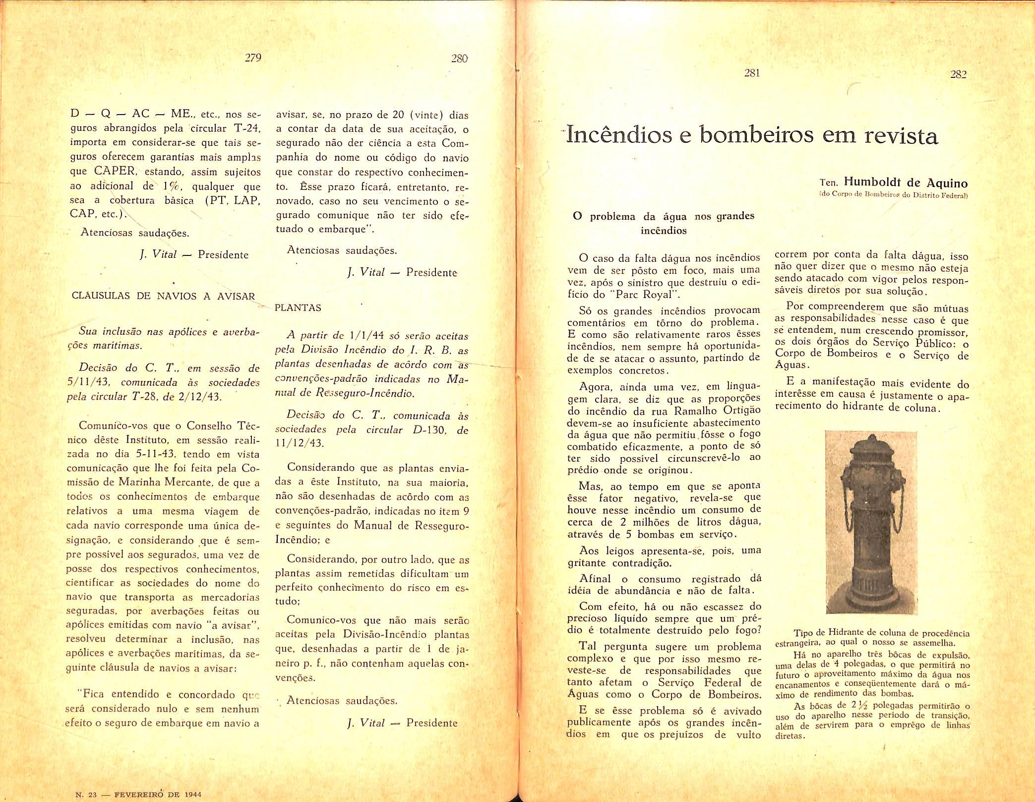 Pareceres e decisoes — Incendios e Bombeiros em Revista, Tenente Humboldt de Aquino — Contribuigao do I.R.B. ao