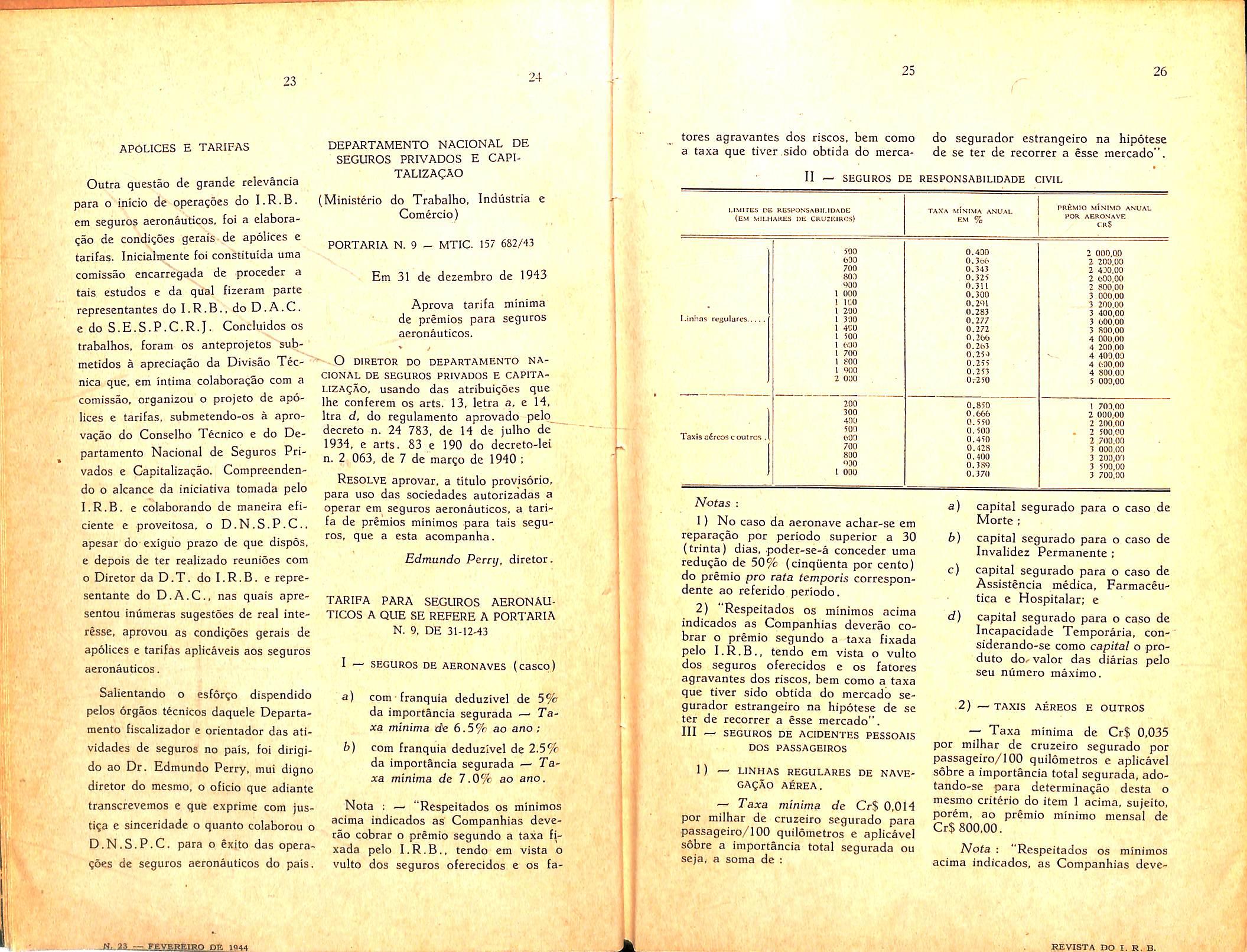 2. O I.R.B, estudara as condiCoes gerais padronizadas das apolices bem como tarifas, para seguros aero nauticos. que deverao ser observadas, a partir de 1-1-44, per todas as socie dades que operam em tais riscos,
