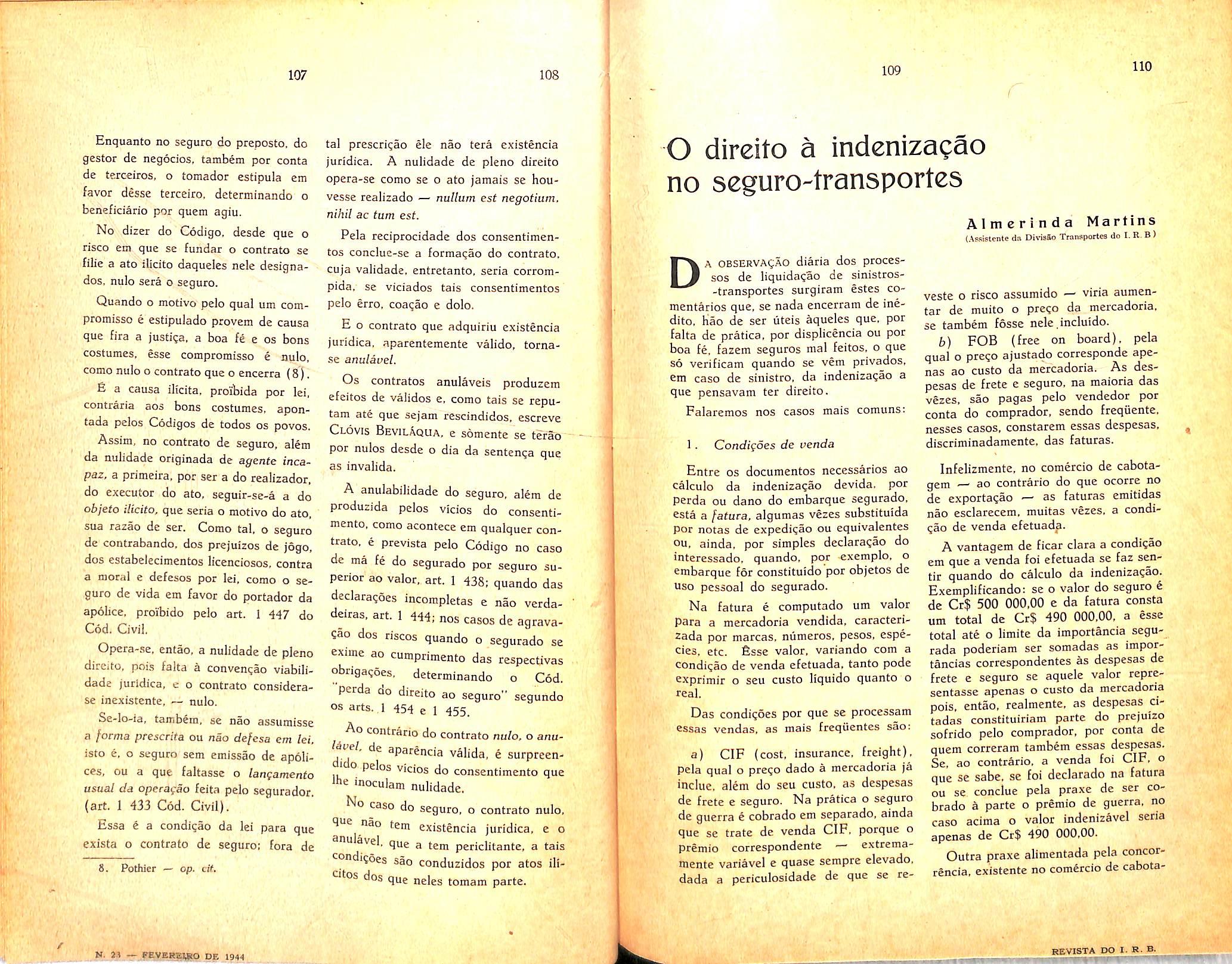 Fi7ho — O direito a indeniza^ao, Almerinda Martins — A Apolice-padrao de New York, Claudio Luiz Pinto — Dados