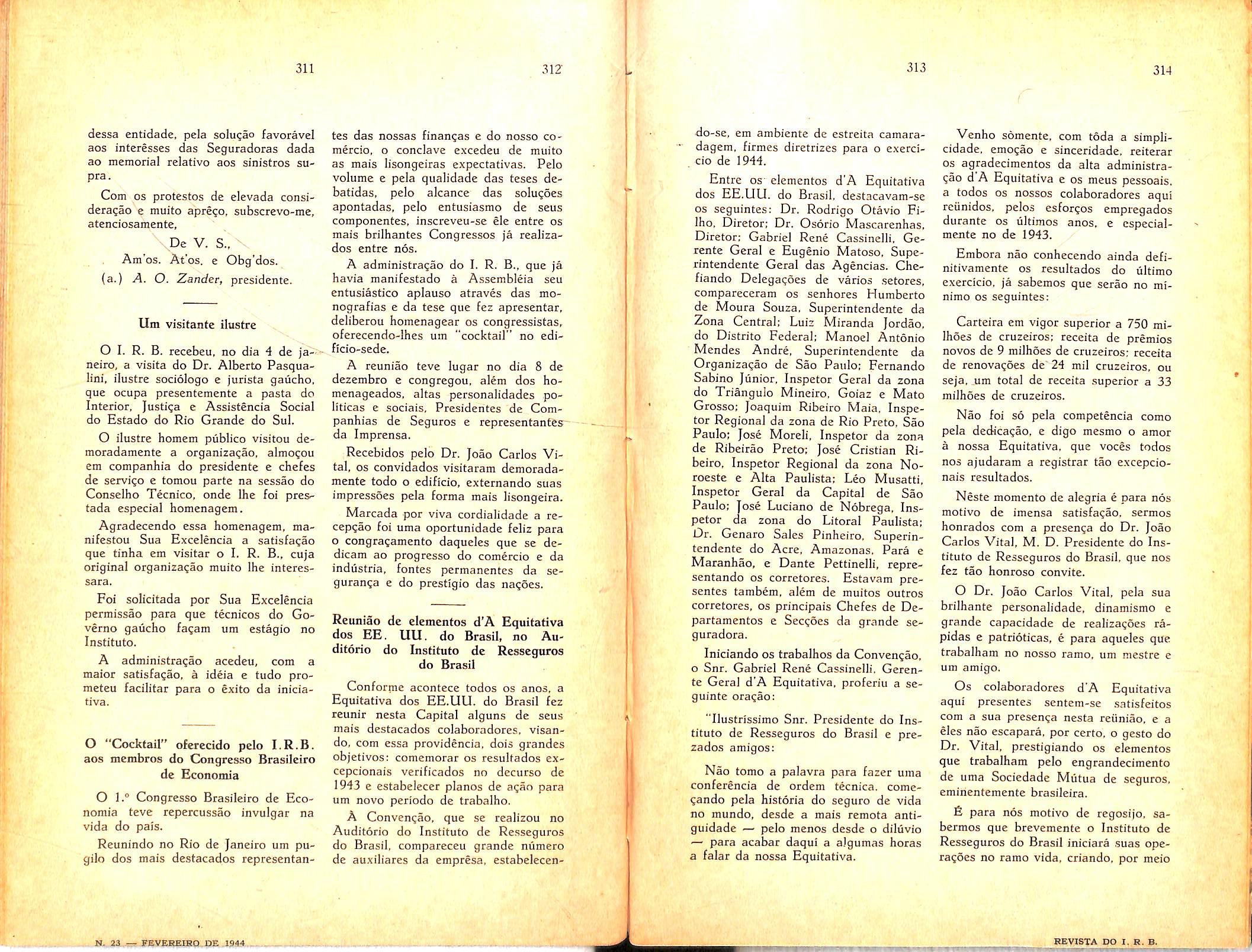 Conforme acontece todos os anos, a Equitativa dos EE.UU. do Brasil fez reunir nesta Capital alguns de seus mais destacados colaboradores, visando, com essa providencia, dois grandes objetivos; comemorar os resultados excepcionais verificados no decurso de 1943eestabelecerpianosdeagan para um novo periodo de trabalho.