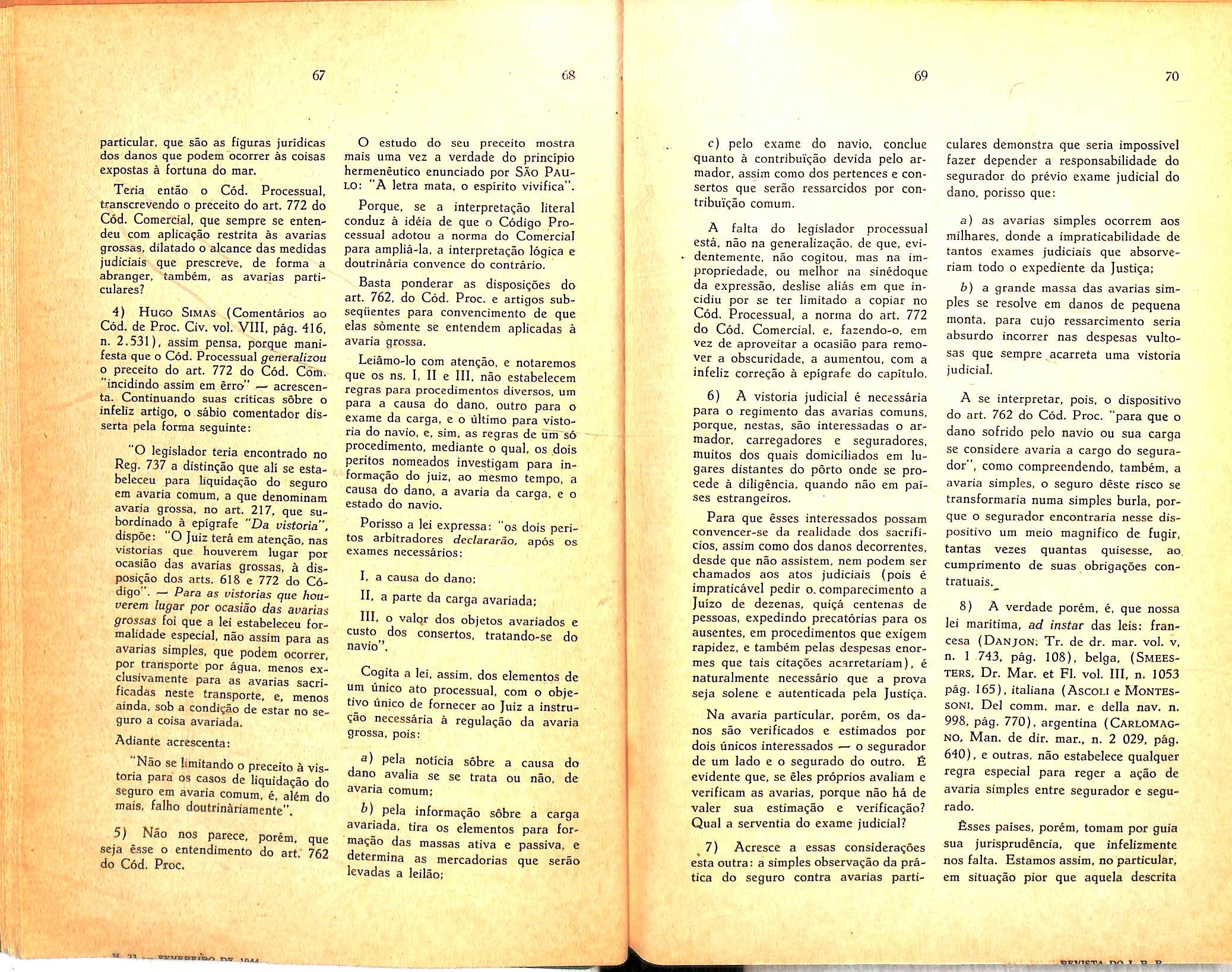 Essa deliberagao calou ainda mais profundamente noseio das Seguradoras, por ter ficado claro nao haver o 1. R. B. concordado com o ponto de vista das Companhias no tocante a classifica^ao das avarias, — opiniao essa que justificaria a recusa do pedido.