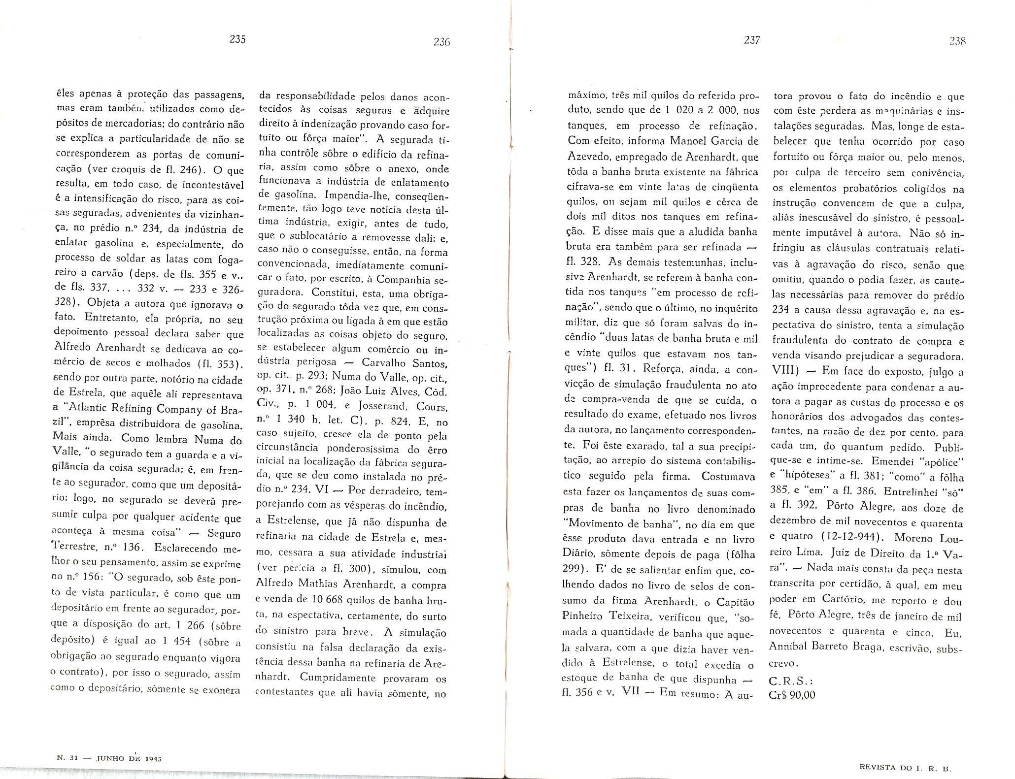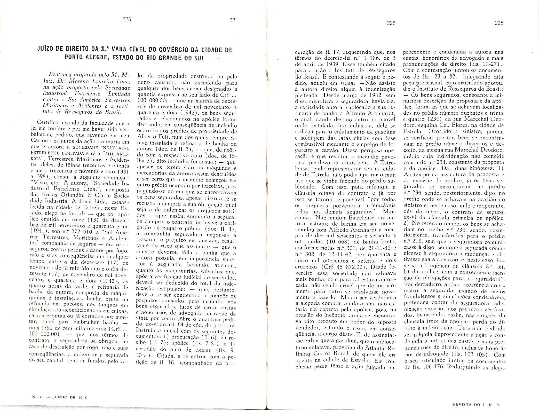 Ncwsweck (New York) Vol XXV — N. 17 — Abril de 1945. The Quarterly of the National Fire Protection Association (Boston) Vol, XXXVIII — N. 3 — Janeiro de 1945. The Weekly Underwriter (New York) Ns. ]9,/22 ~ Novem bro — 23/24 — Dezembro dc 1944.
