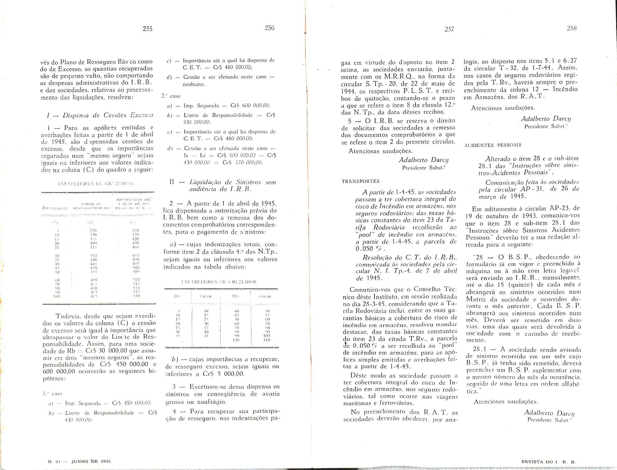 Exmo. Sr. Presidente do Instituto de Res,seguros do Brasil, Exmo. Sr. Diretor do Departamento Nacional de Seguros Privados e de Capitalizagao,