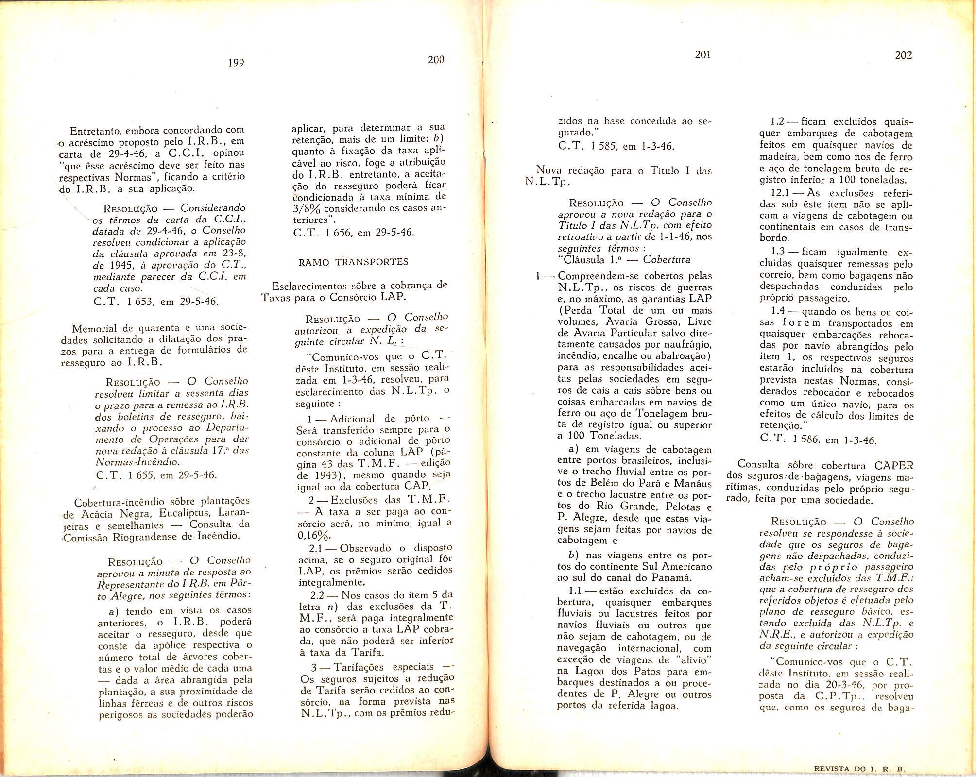 Tradufoes e Transcrigoes, col. 193 — Pareceres e Decisoes, col. 197 Bibliografia, col. 247 — Eleigao no Conselho Tecnico do Institute de Resseguros do Brasil, col. 253 — Noticiarib, col. 255.