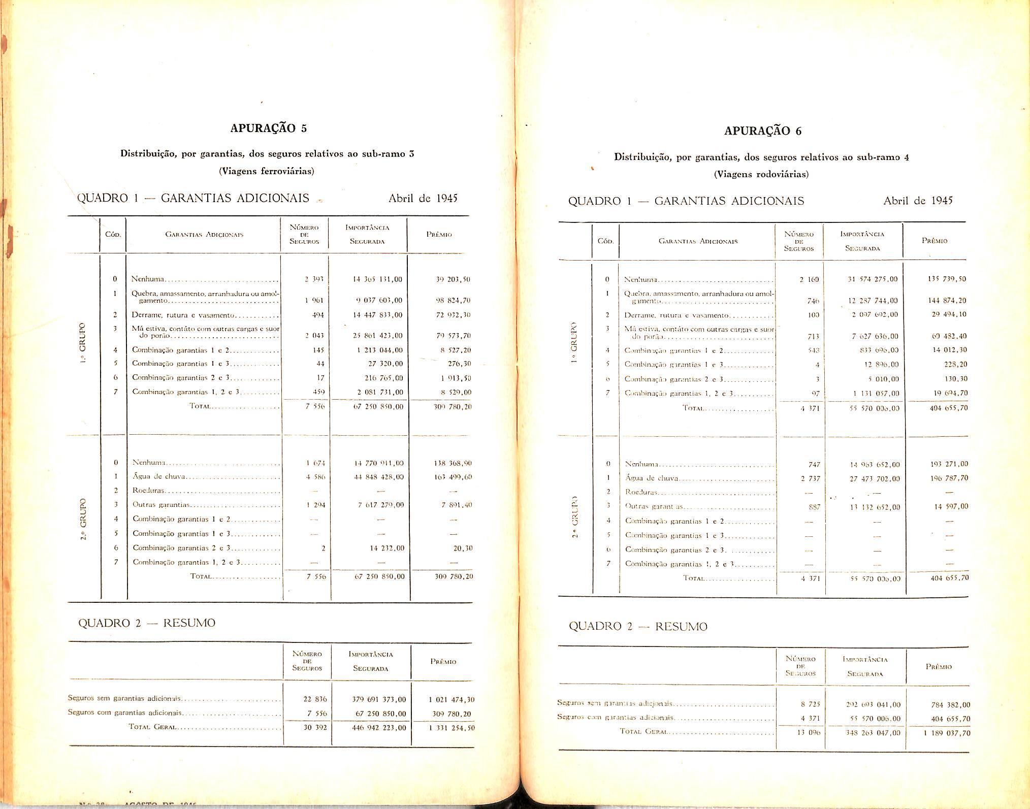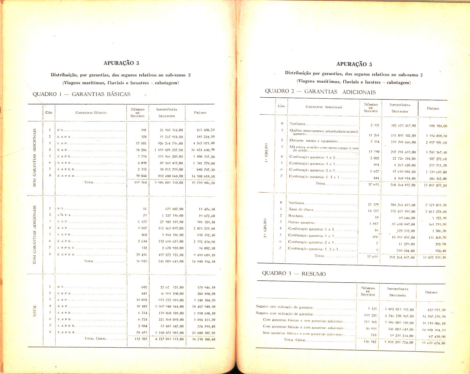 Quanto aos seguios, as estatisticas realizadas correspondem as somas seguradas e premios aceitos nas 26 clas ses de ocupagao e 6 de construgao. adotadas, fornecendo-se, tambem, aos departamentos estaduais de seguros, as informagoes requeridas pelos mesmos.