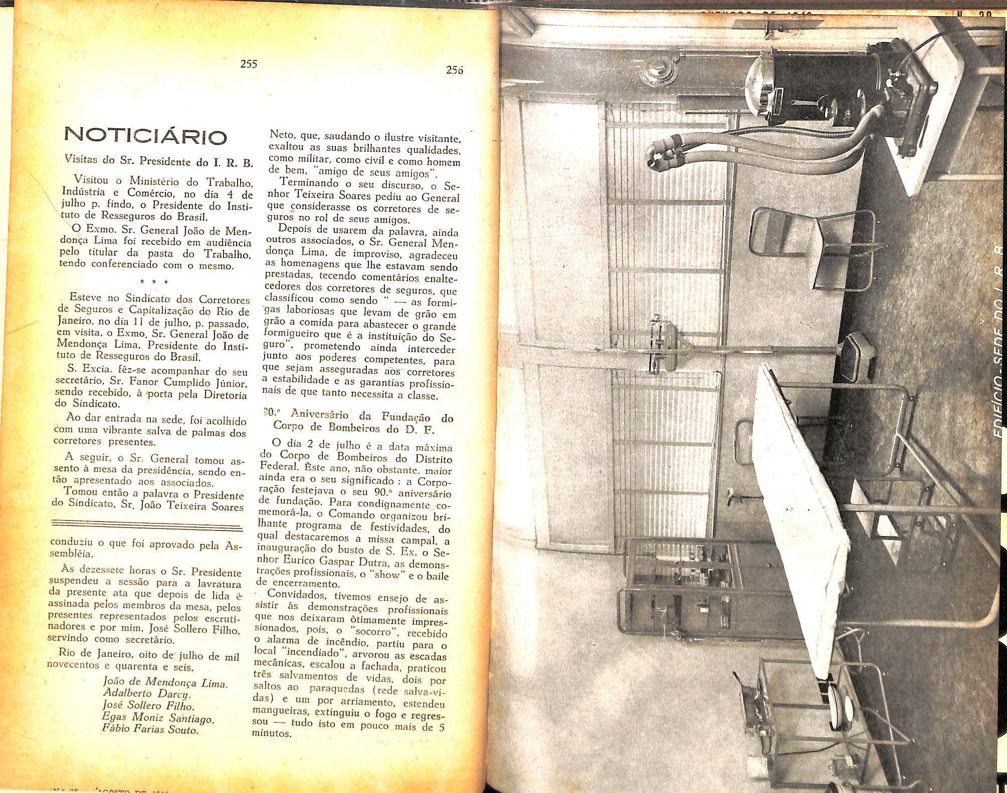 Esteve no Sindicato dos Corretores de Seguros e Capitalizagao do Rio de Janeiro, no dia II de julho. p. passado, em visita. o Exmo. Sr. General Joao de Mendonga Lima. Presidente do Irlstituto de Resseguros do Brasil.