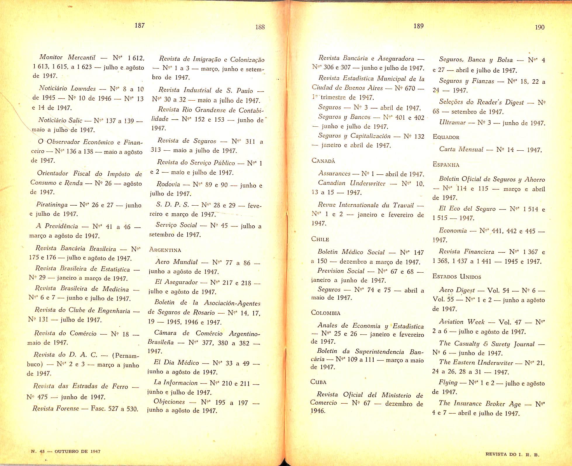 Outras informagoes complementares. como per exemplo, nomes e enderetOB de companhias de seguros. orgaos tecnicos e associagoes de classes, dirctores de companhias de seguros, atuarios e perito-contadores especializados em seguros, etc. poderiam ser conhecidas em toda a America se existisse uma publicagao especializada que coletasse em todo o hemisferio esse material.