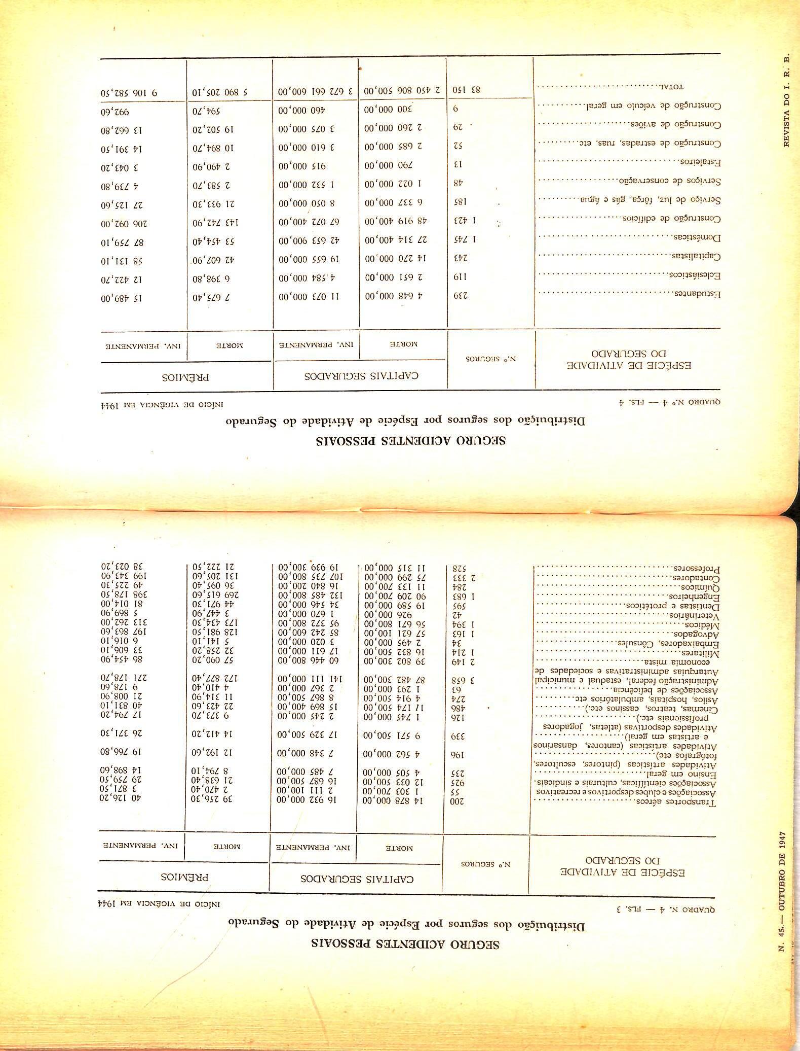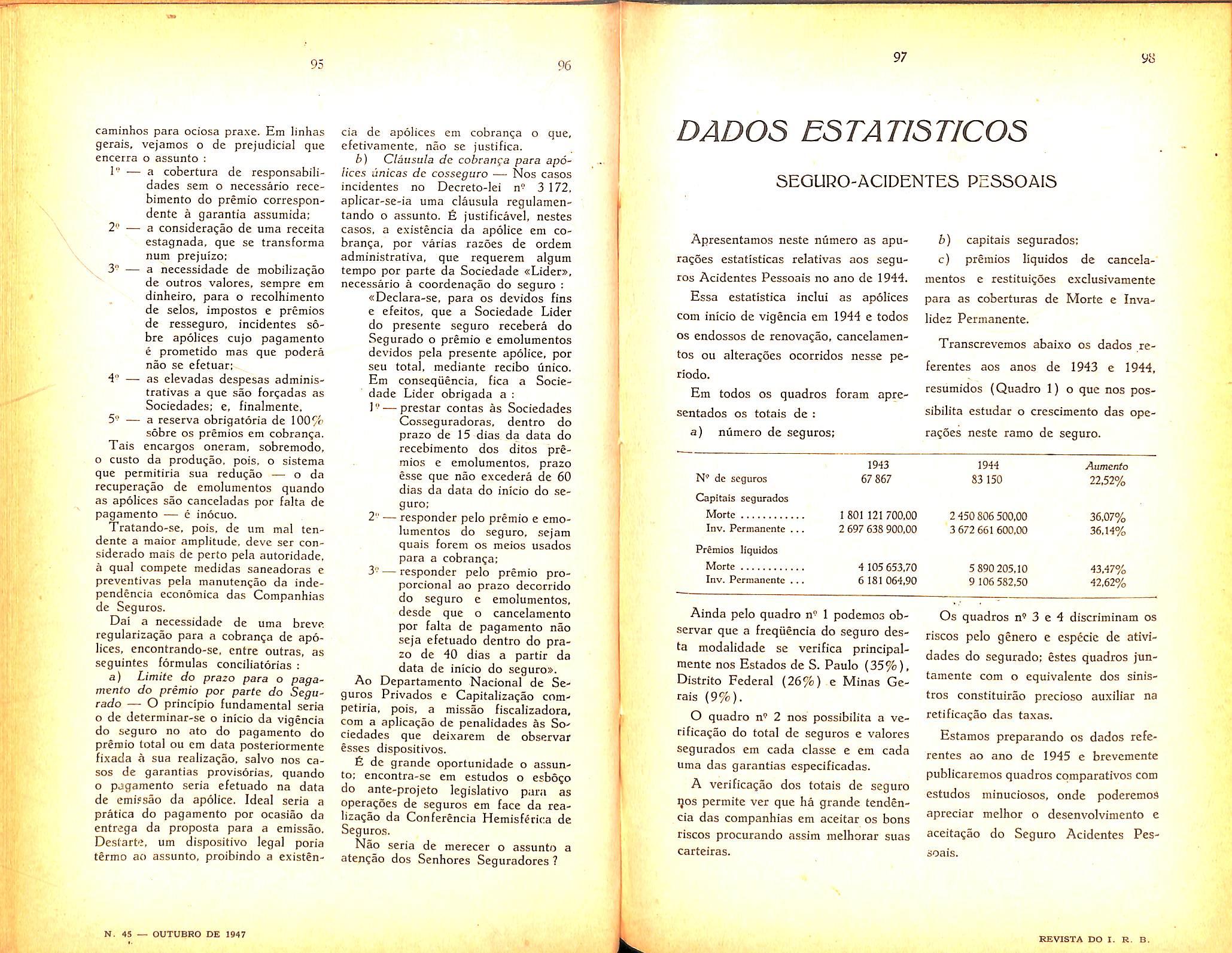 Teses brasileiras, aprovadas pelo Comite Permanente, que serao apresentadas na Conferencia Hemisferica de Seguros; coluna 5 — O seguro como fator economico: America Matheus Florentino, col. 19 — O abandono liberatorio e a limita^ao da responsabilidade do armador no Direito Maritime Brasileiro; ]oao Vicente Campos, col. 41 — O sinistro no se guro de responsabilidade civil; Ar mando Kraemer, col. 49 — Das obrigagoes do segurador: David Campista Filho. col. 57 — Comentarios em torno das Normas para Gessoes e Retrocessoes-Transportes (N.Tp.); /. }. de Souza Mendes. col. 63 — Estudos sobre o ramo Vida: Wefeer Jose Ferreira, col. 77 — A embalagem e o se guro; Abelardo Figueiredo Carvalho Ramos, col. 87 — Cobranga de apolices: ]. Esmeraldo, col. 93 — Dados Estatisticos, col. 97 —Tradugoes e Transcrigoes, col. 115 — Pareceres e Dpcisoes, col. 163 — Bibliografia, col. 185 — Noticiario, col. 193.