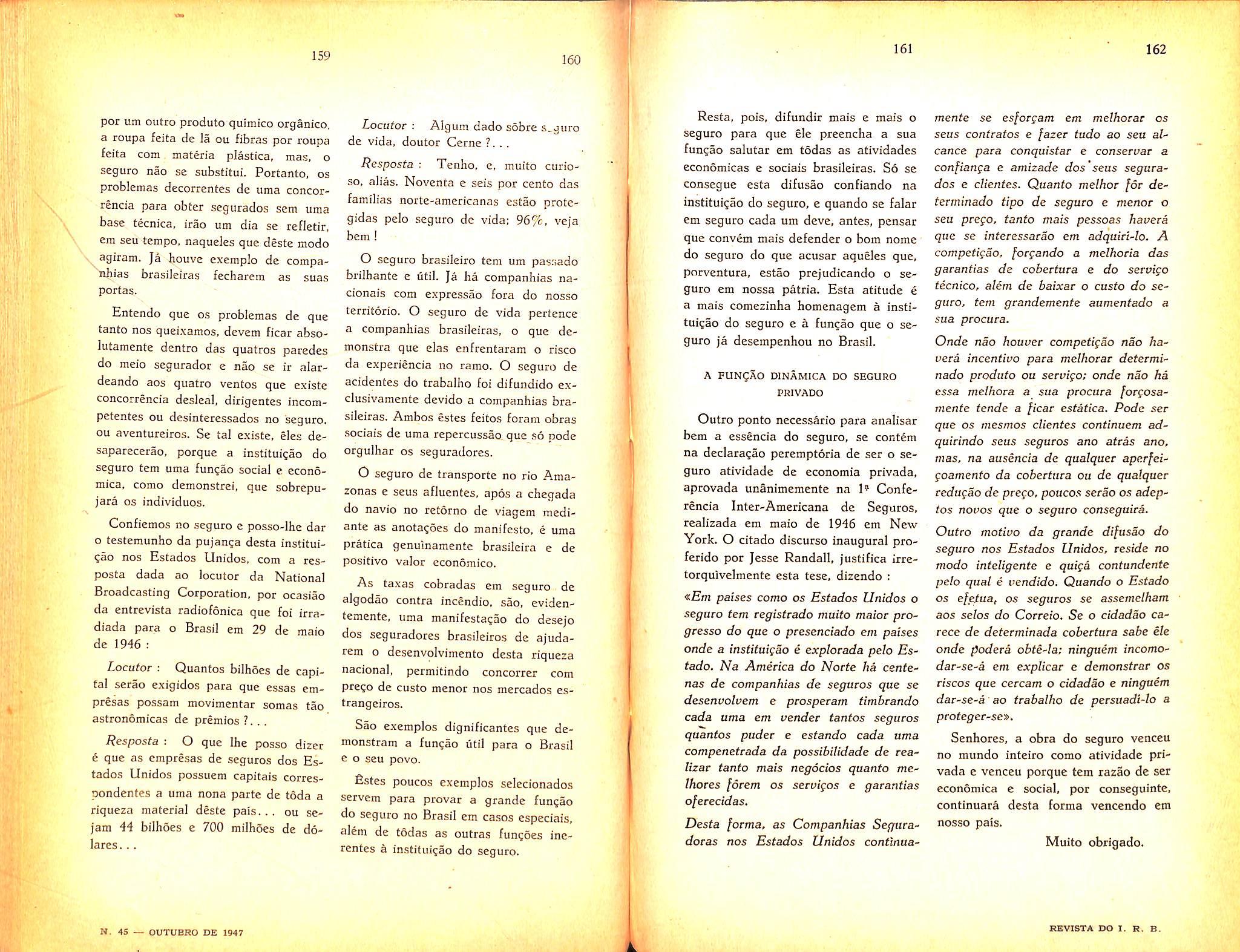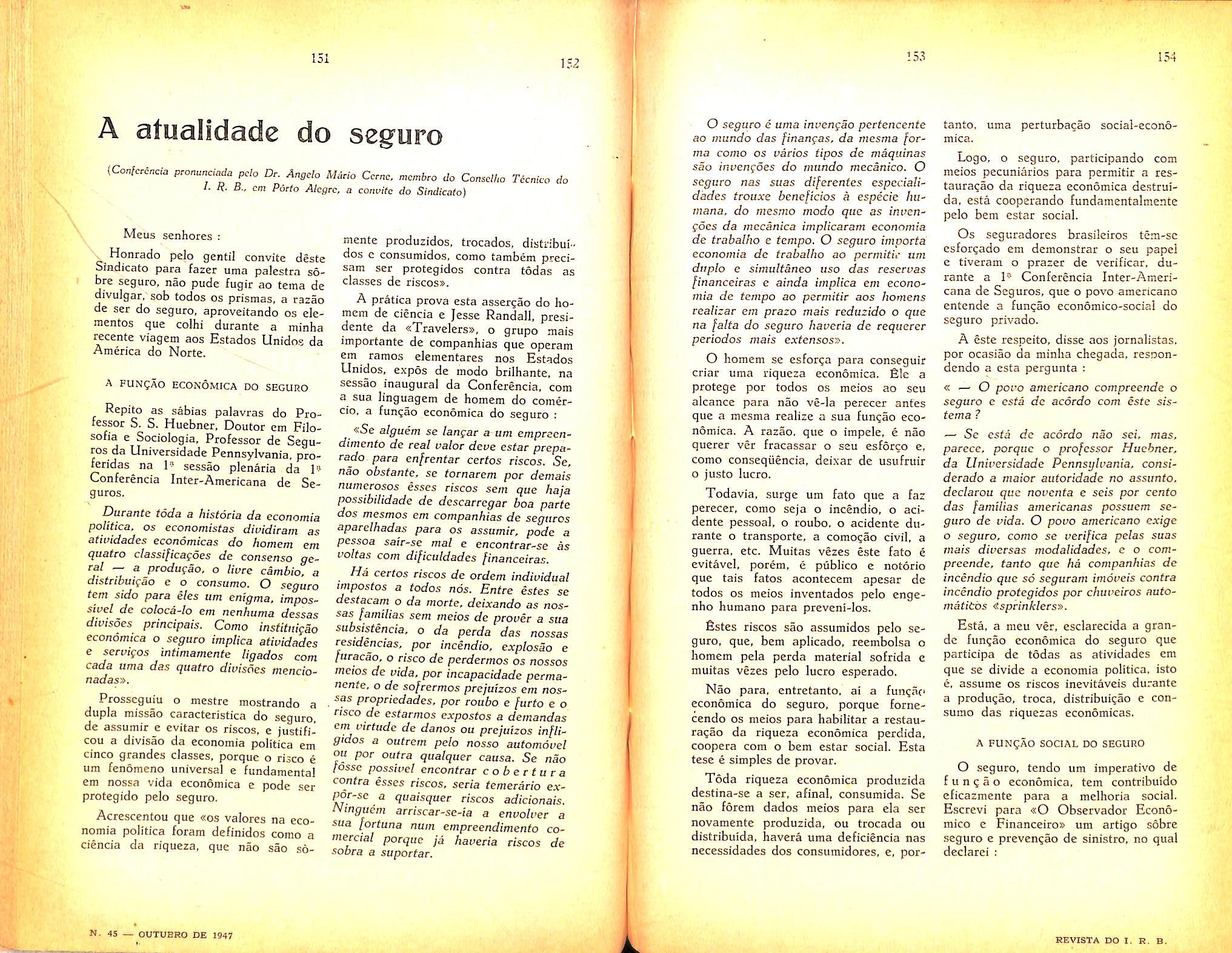 estabelecer novas normas e diretrizes destinadas a orientar o seguro no Hemisferio Americano, fi considerando, assim, num elevado ponto de vista o seguro, que nos sentimos imensamente. honrados com a vossa presenga entre nos. Esta honra, que tanto nos desvanece, e acrescida do prazer do vosso convivio — agradavel cohvivio estreitando-se, assim, ainda mais. os lagos de amizade entre os povos americanos atraves de uma de suas grandes e nobres finalidades — o seguro.