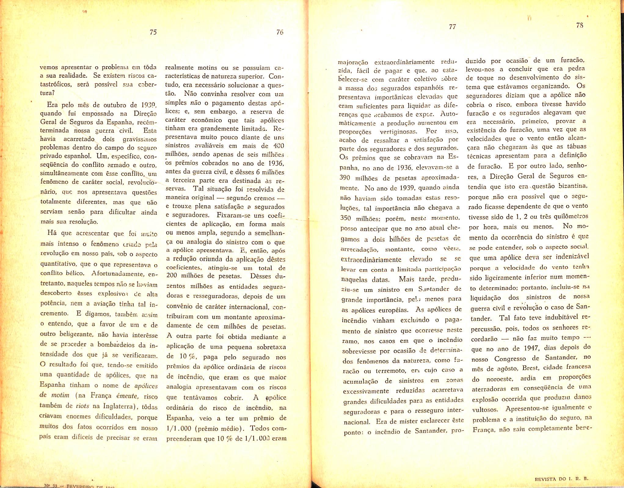 Estamos reunidos pela terceira vez no curto espa^o de trc.s anos, com a elevada finalidade de debater os problemas similares que afetam as organizagoes de Seguro inter-americanos. A simples efetiva^ao de tais reunioes a pequenos intervales revela a transcendencia desses problcmas e a prcmencia dc solu^oes que os mesmos reclamam. que, Jamais a instituigao universal do Seguro alravessou uma fase, como a atual, de tao marcante significa^ao e nunca a importancia do seu alcance social foi, como agora, tao bem medida.