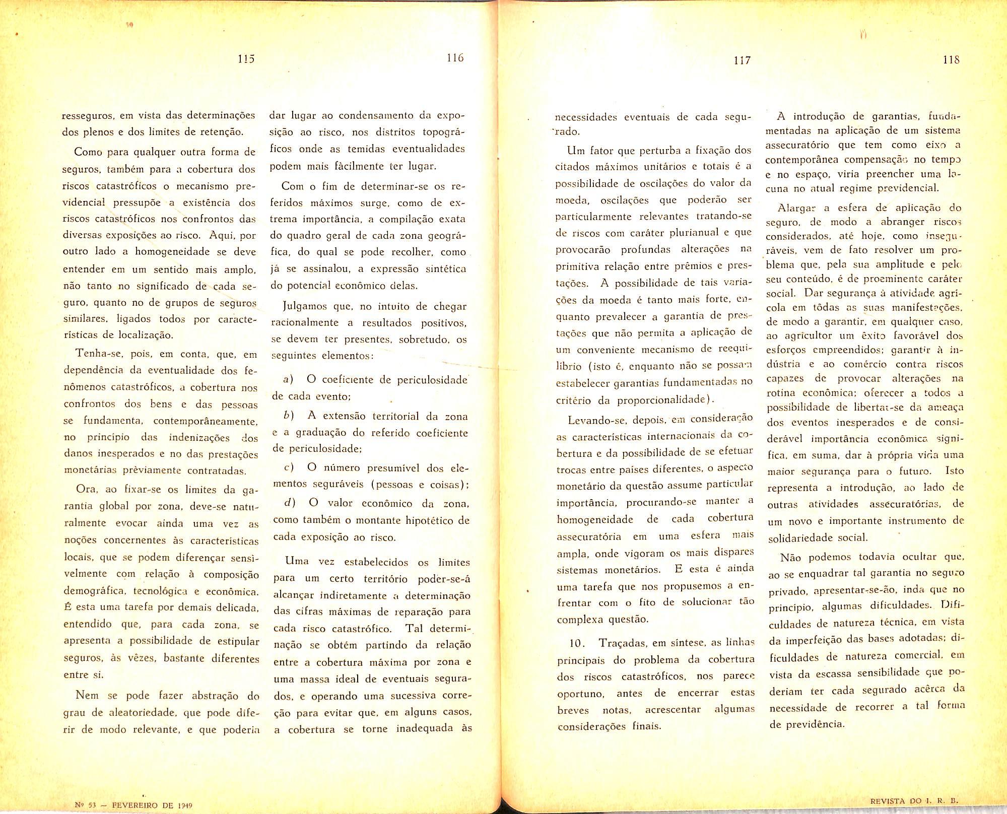 O Brasil, [elizmente, e, um pats onde pouco se tem [eitq_ sentir a agao de cafasfrofe da natureza ou provocadas pelo homem, porem, isto nao autoriza a suposigao da impossibilidade da ocorrencia dc tais eventos. E a confirmagao disto e a recente tragedia em uma zona do Esfado de Minas Gerais. Por esta razao,. e de grande importancia o imediato estudo da co&ertura desses riscos,. que podera, em [ace da menor possibilidade de' catastro[cs, ser prevista mediante bases justas e pouco dispendiosas. *