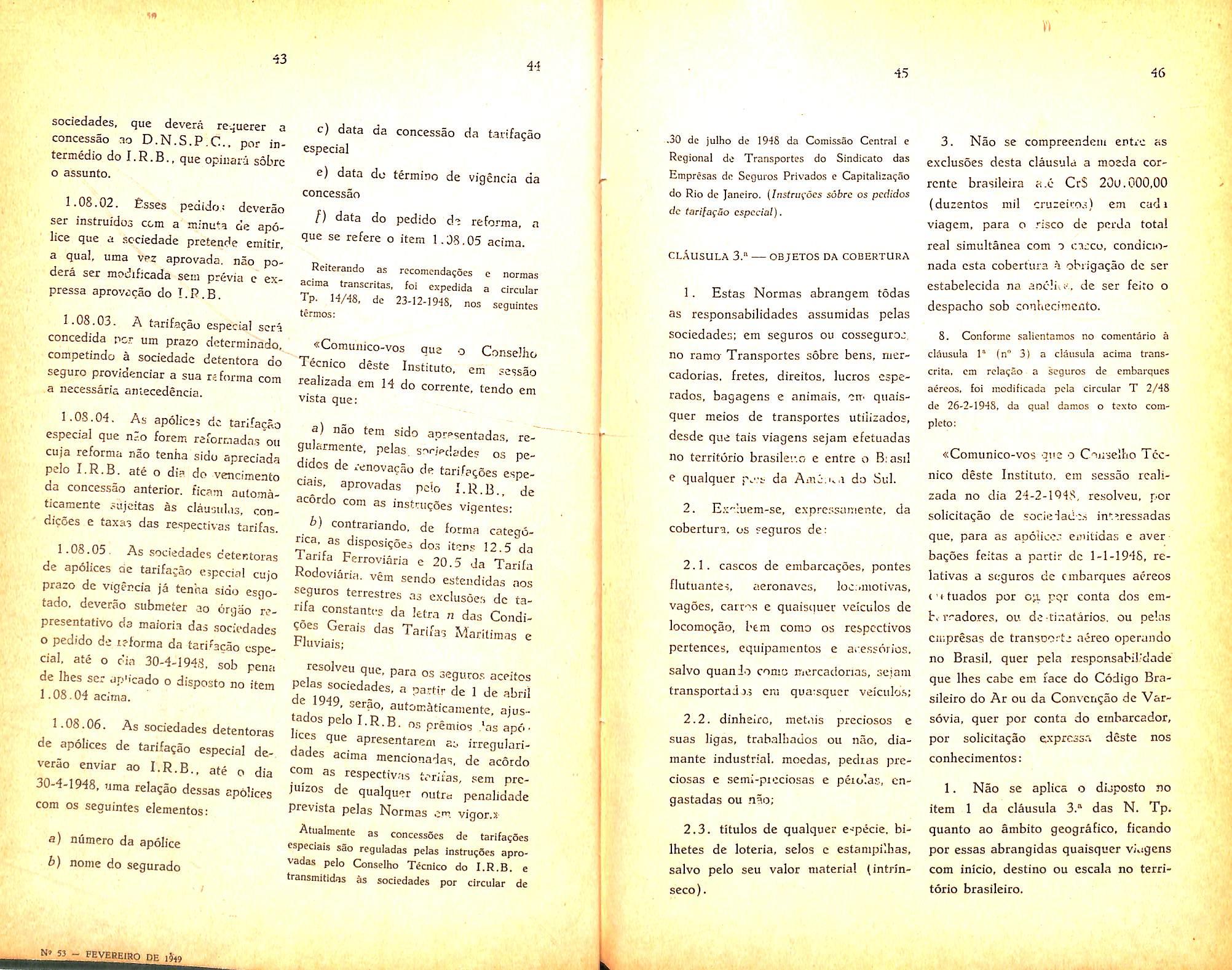 oantos e Wano Trind^e, col. 5 CoNormas para CessSes e Ketrocessaes-transportes; Paulo BarboItdlT-'": " ~ <1= Trindade. col. 49 _ ConferSncia proD. Joaquf^ Ruiz y Ruiz no audjtdno do I.R.B., em 10 de deIsoaZi^" - Solucaes w ''"V catSstrofe: Iffrriao Hernando de larramendi. col. do nro^f" " solucSo assecurat6ria Dr i„t M r ' "'T "'"'"Micos: ^r. Lutgi Moltnaro. col. 97 — An^lf«A