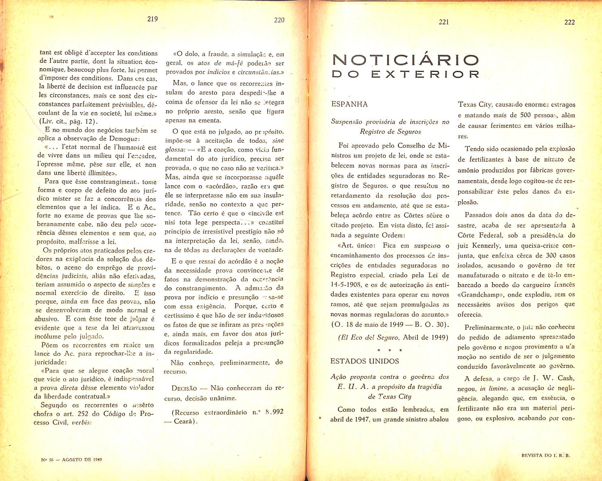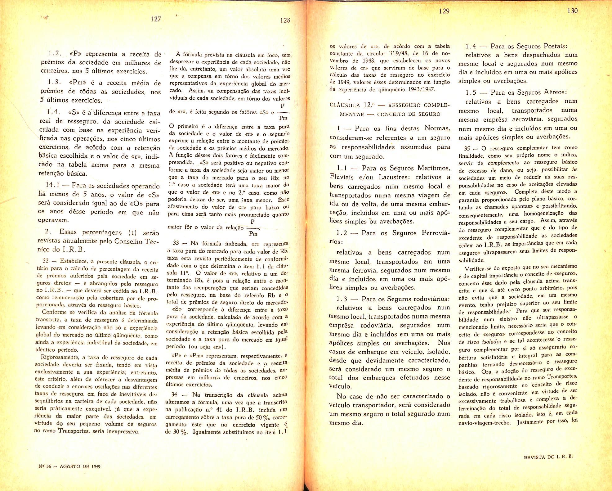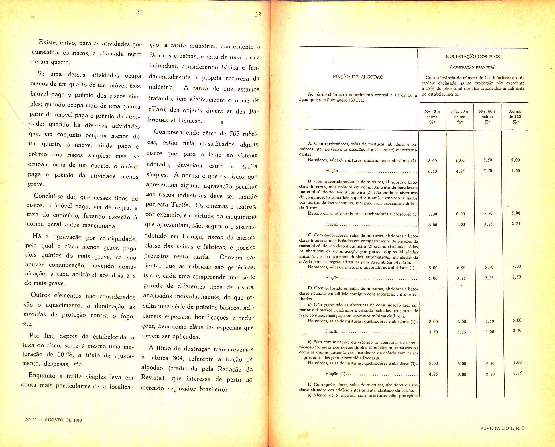 Jacques, coluna 125 — Estudos sobre o ramo Vida: Weber Jose Ferreira, co luna 143 — Consultorio Tecnico, co luna 147 — Dados Estatisticos, co luna 163 — Tradugoes e Transcri^oes, coluna 179 — I.R.B. Balancete do 1° trimestre de 1949, coluna 199