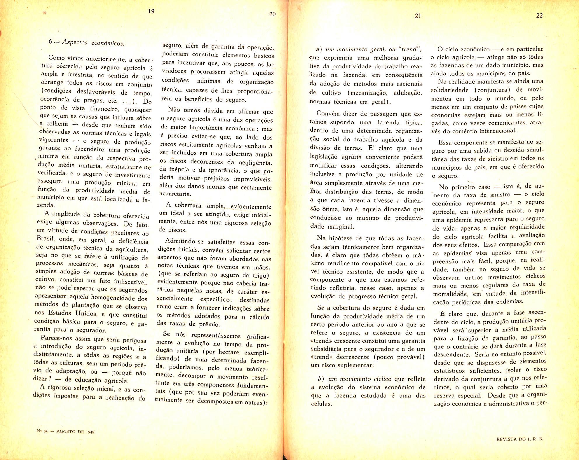 Em varies paises do inundo, e especi_almente nos Estados Unidos, onde os problemas da agricultura sac estudados com o mais absolute espirito cientifico. OS seguros agricolas ja vem sendo explorados em larga escala. Entre nos o assunto esta sendo ainda objeto de cogitagao dos legisladores. Praticamente. porem. nao ha qualquer experiencia desse importante ramo de seguros, resultando dai. uma falta absoluta de elementos tecnicos sobre a materia.