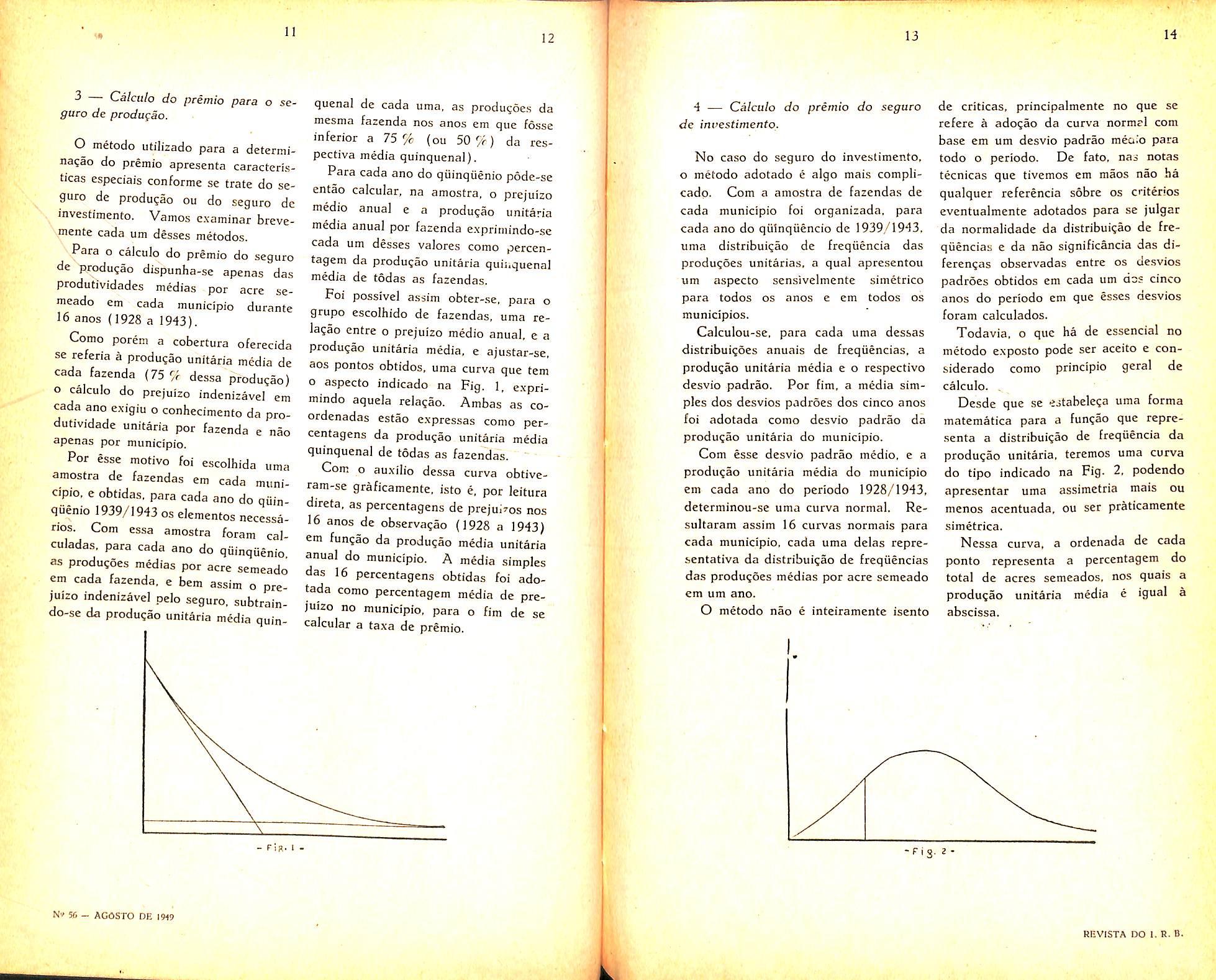 No caso do seguro do investimento. o metodo adotado e algo mais complicadp. Com a amostra de fazendas de cada municipio foi organizada. para cada ano do qiilnqiicncio de 1939/1943, uma distribuigao de freqiiencia das produgoes unitarias. a qual apresentou um aspecto sensivelmente simctrico para todos os anos e em todos os municipios.