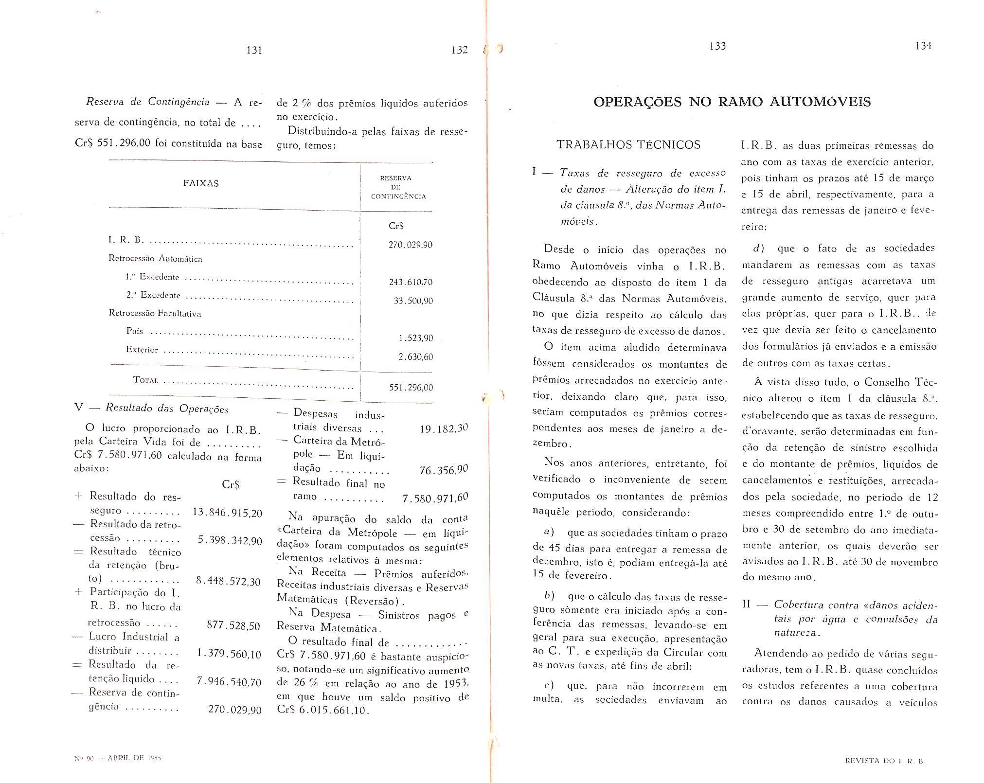 O acentuado cresciinento da Carteira continua exigindo a constituigao de elevadas reservas tecnicas, num total de Cr$ 17.260.022.70 contra Cr$ 8.276.681,70 em 1953.