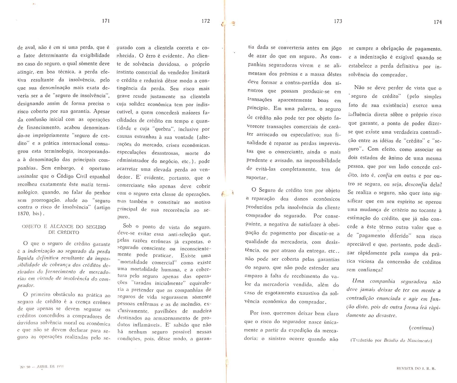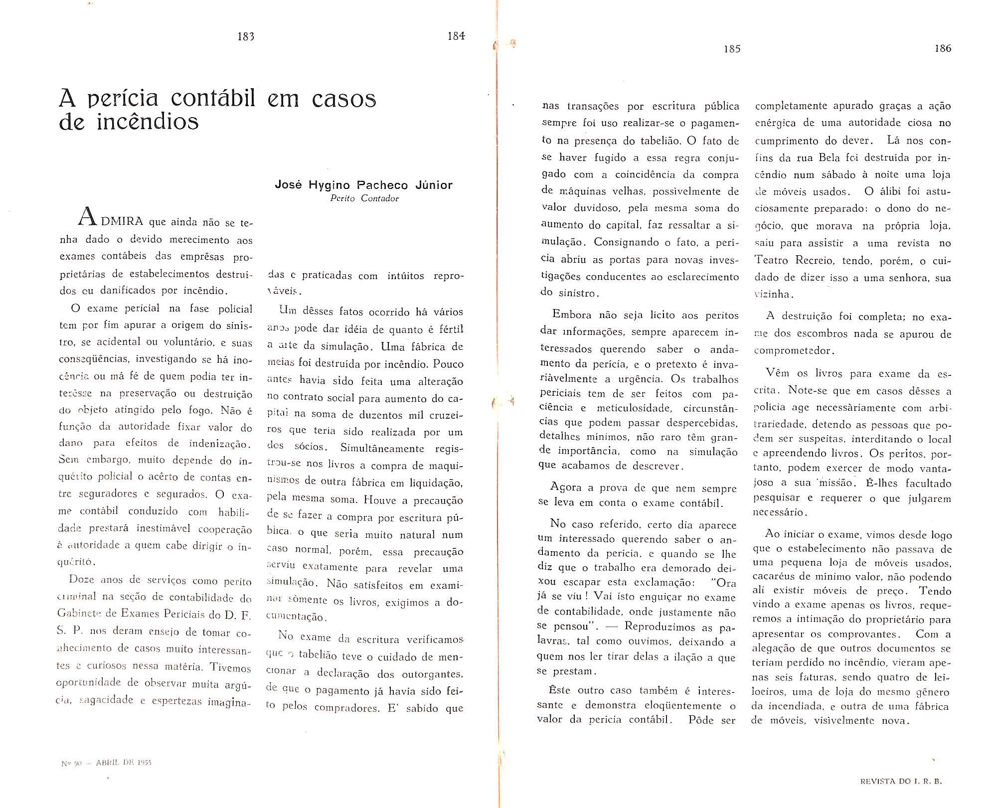 col. 3 Allvidtidcn do I. R. B, ciYl col. 25 -- O .tcLiuro de crcdlto come mstrumento df: tcpaniqao e e.vpansSo comerciai: D. Hrtriqui- de Diio r Izaiukf^,. eol. 167 XIV CoiiBies. so Intcinucional di- Atuaiios: Conio Dbter o equdihiii, finnnccuo da.i eiuid.i des scguiedoras; /, Iluvrta pemi. col, 175 — A perlcia contabll cm caao.i do !nc€ndios; Pacheco /d,i:oc