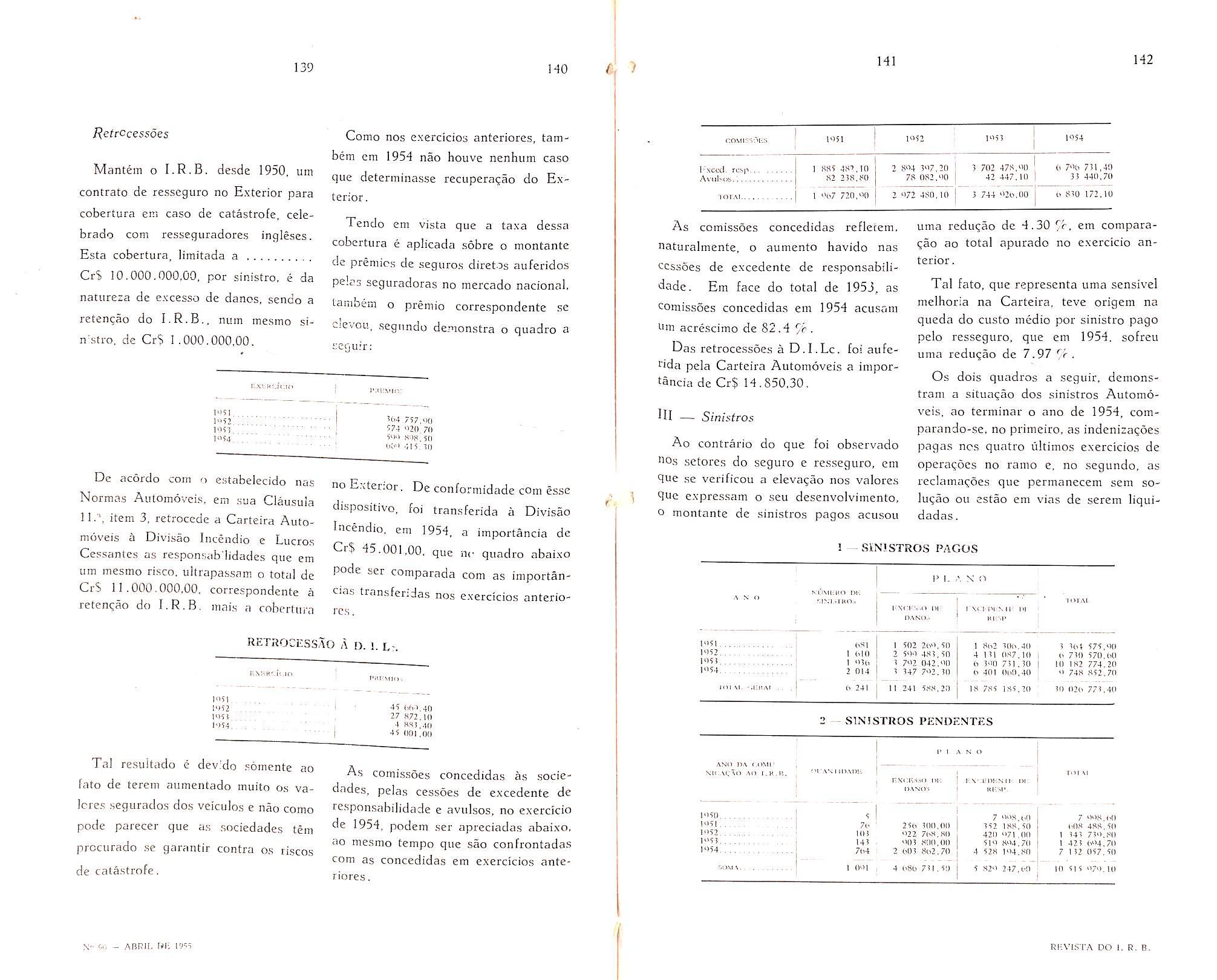 A reserva de sinistros a liquidar ntingiu a significativa soma de Cr$ 142.035,627.10 contra Cr$ 36.345.442,40 no exercicio ante rior.
