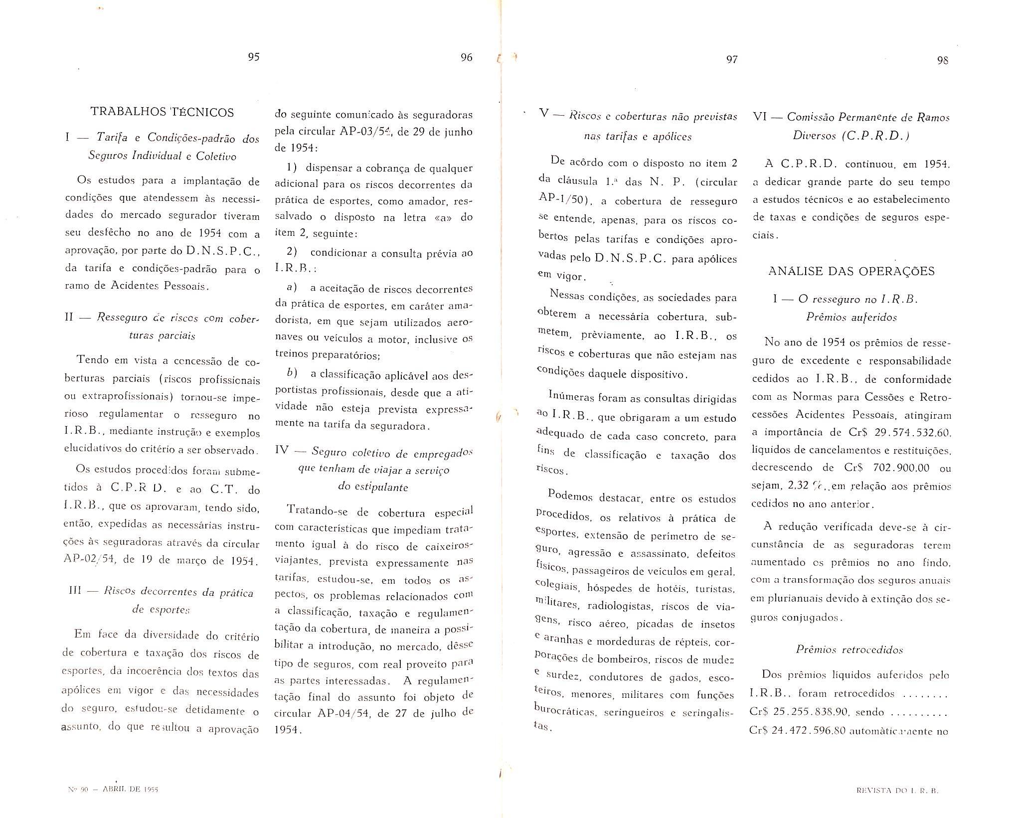 As despesas administrativas qae, em 1950, consumiam 10,88 % dos premios de aceitagao, ceduziram-se, em 1954, a apenas 8,28 fo desscs valores.