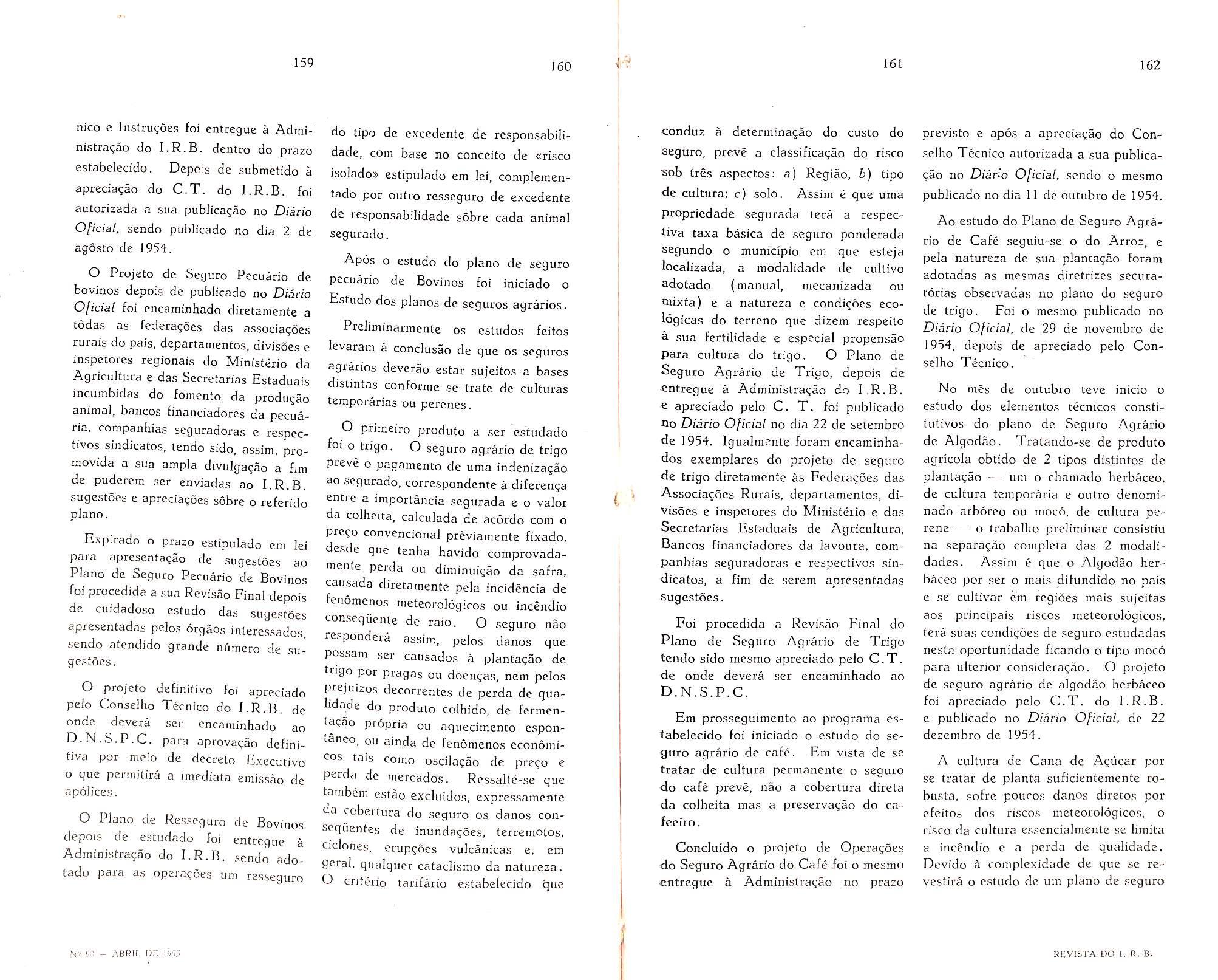 de resseguros previstos. Foi entregue pela nova Divisao a Administragao do I.R.B. 0 piano definitive de seguro agrario de trigo e o piano de resseguro de bovinos ja referido.