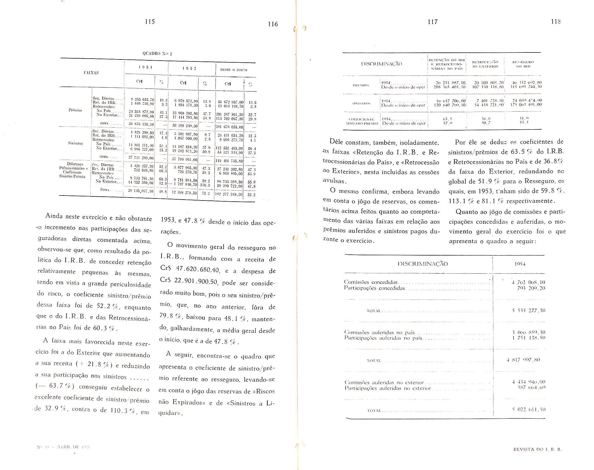 O encaixe de premios oriundos de referidas aceitagoes atingiu a cifra de Ci'S 24.951 .832,40, contra um montame de Cr$ 12.825.292.30 em 1953, representando percentualmente um aumento de 94,63't em rela?ao ao exer cicio anterior.