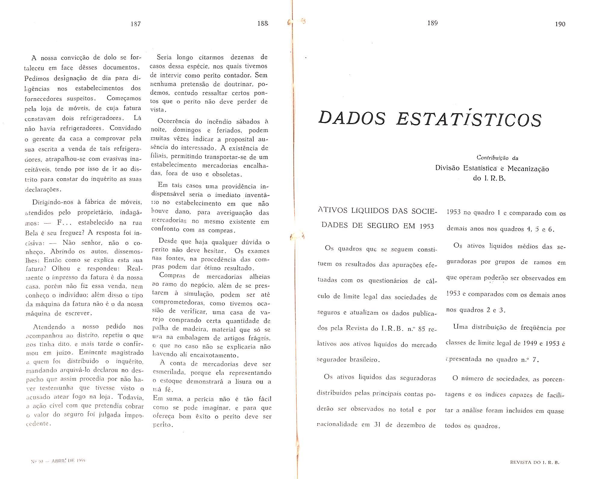 Estatisticos de ni'iineros 37 a 42 e divulgados pela Revista do I.R.B. 38 quadros Estatisticos,