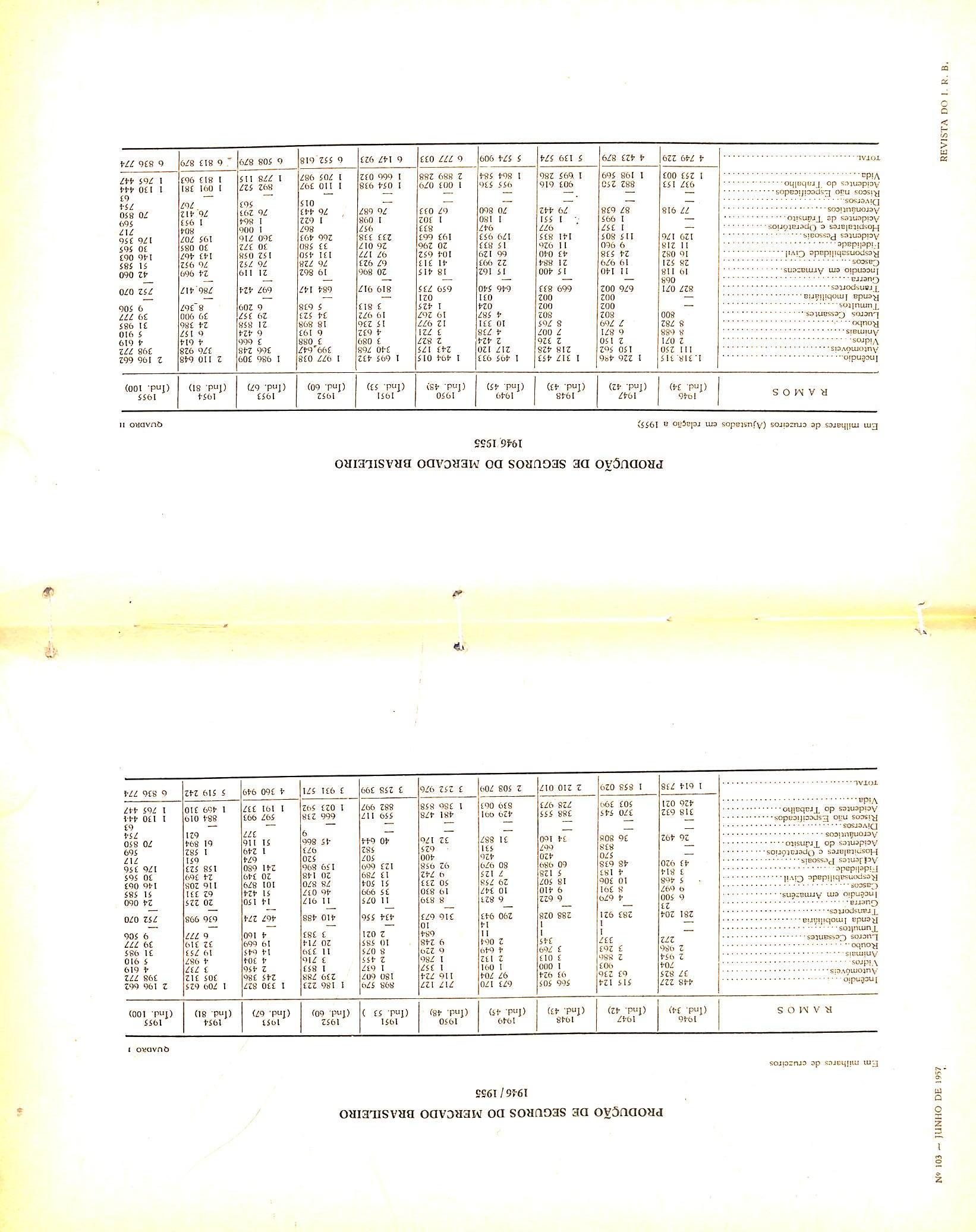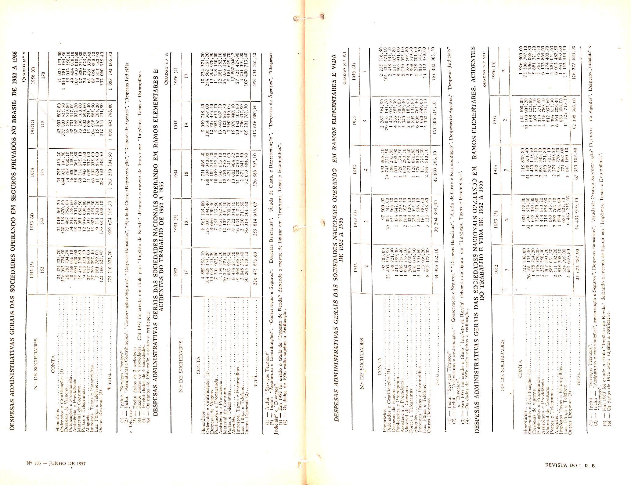 digno de nota o incremento bavido "a produgao de seguros de vida. Nada obstante o processo inflacionario que padece ha anos a economia do P^'s, dai decorrendo acentuado aviltamento da moeda, a arrecadagao em tal ranio cresceu, em valores ajustados, de E2 bilboes em 1946 para 1,7 bilboes em 1955.