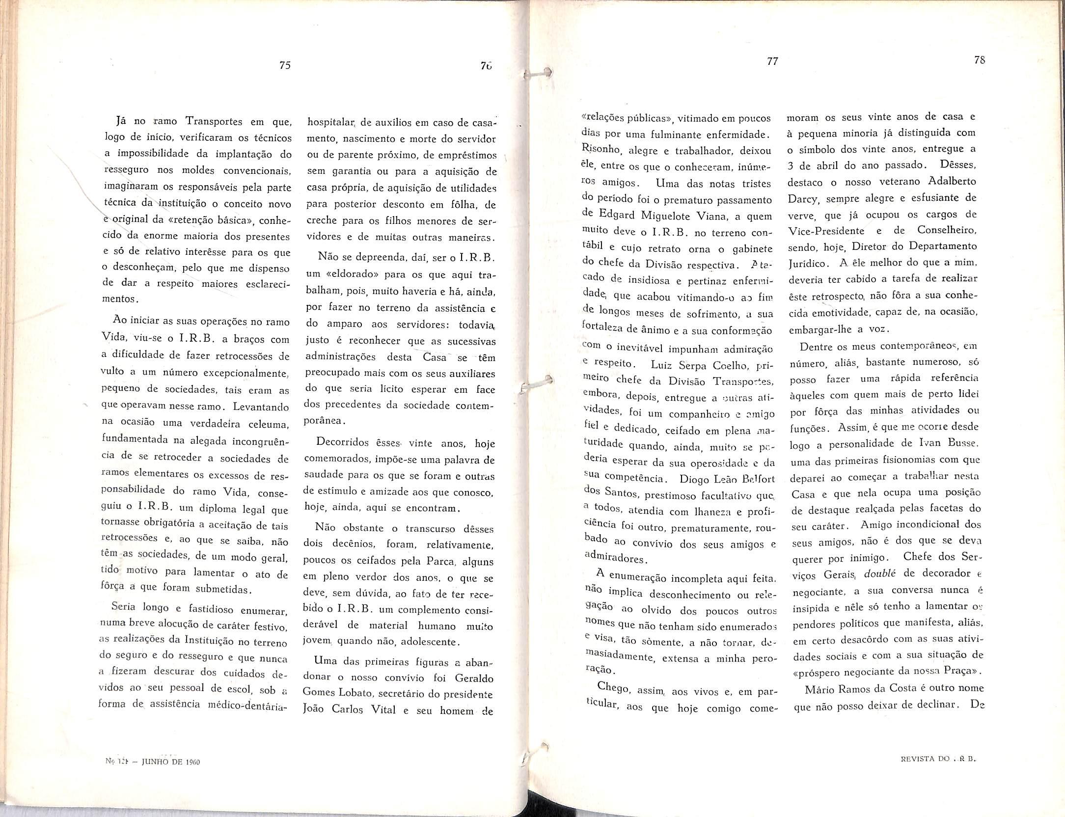For ultimo, pos em realce os exitos pbtidos pelo I.R.B. no desempenho sua missao, formulando votos que o futuro reservasse a Entidade maiores fllorias do que as alcanqadas no passado.