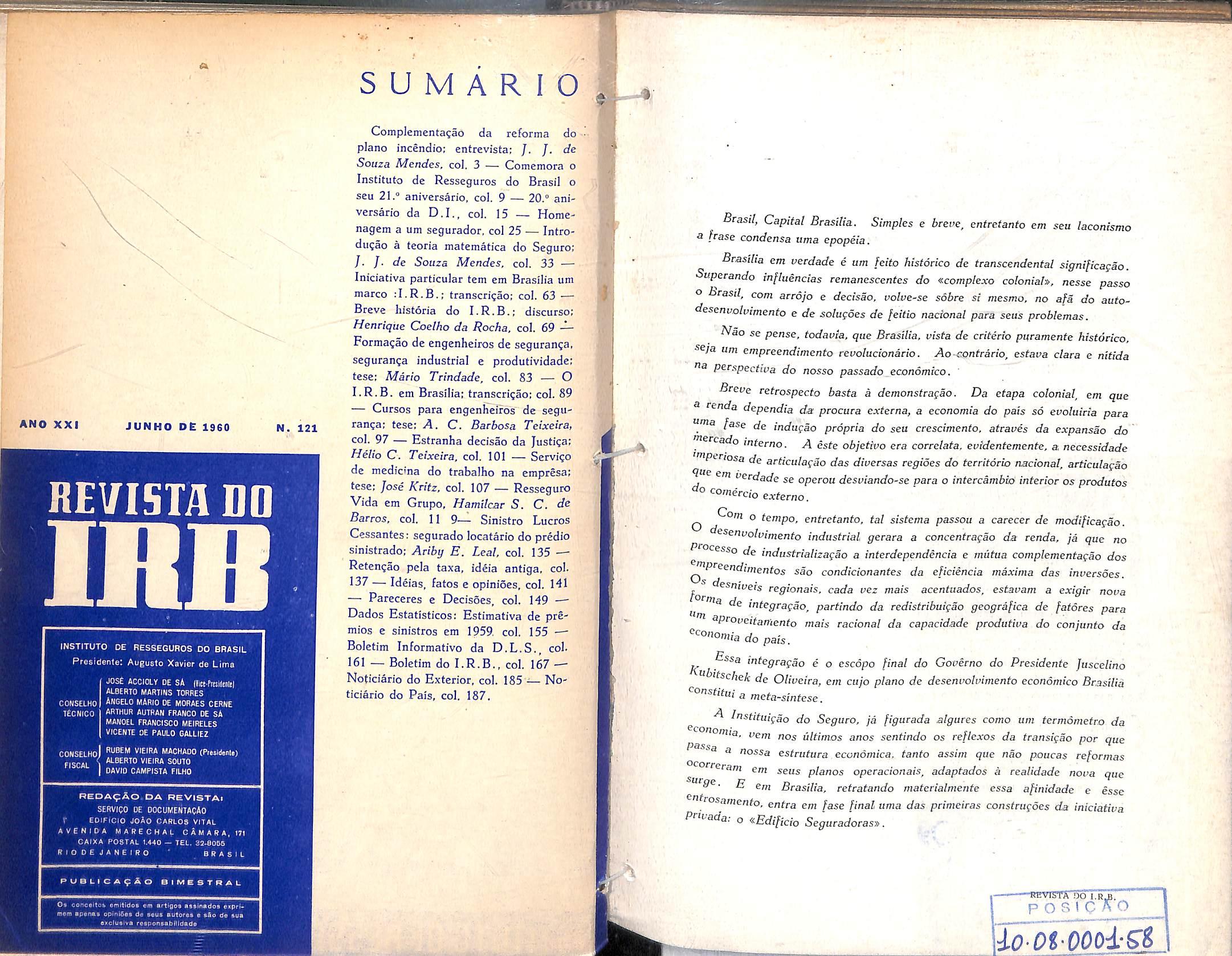 N.. 121 - JUNHO DE I960 REVISTA DO I.R.B.