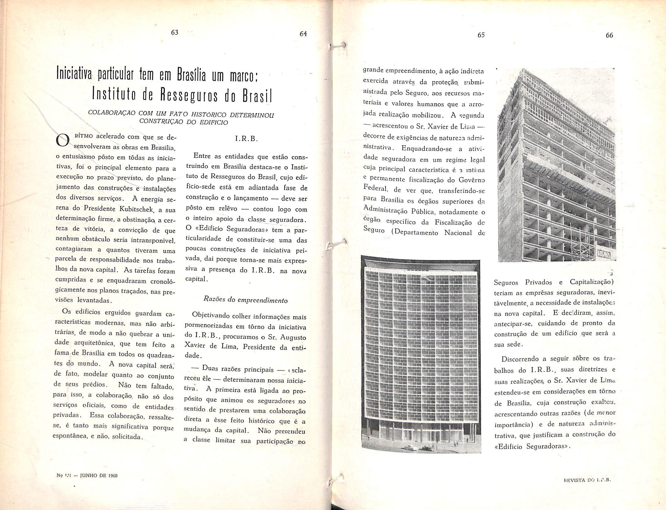 /. J. de Souza Mendes. col. 33 Iniciativa particular tem em Brasilia um marco iI.R.B.; transcri^ao; col. 63