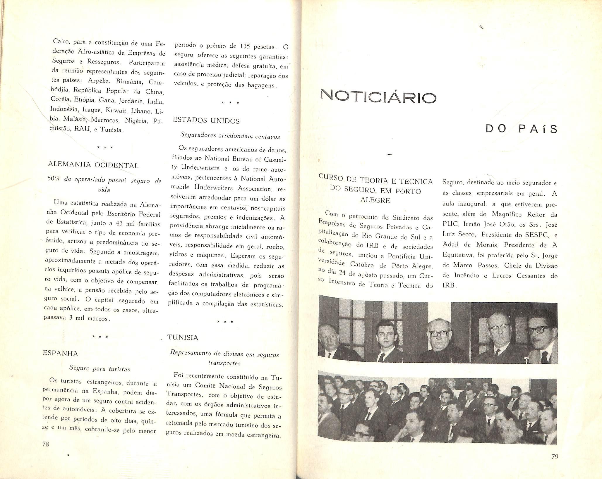 Seguro, destinado ao meio segurador c as classes empresariais em geral. A aula inaugural, a que estiverem presente, alem do Magnifico Reitor da PUC, Iimao Jose Otao. os Srs. Jose Luiz Secco, Presidente do SESPC, e Adail de Morals, Presidente de A Equitativa, foi proferida pelo Sr. Jorge do Marco Passos, Chefe da Divisao de Incendio e Lucros Cessantes do IRB.