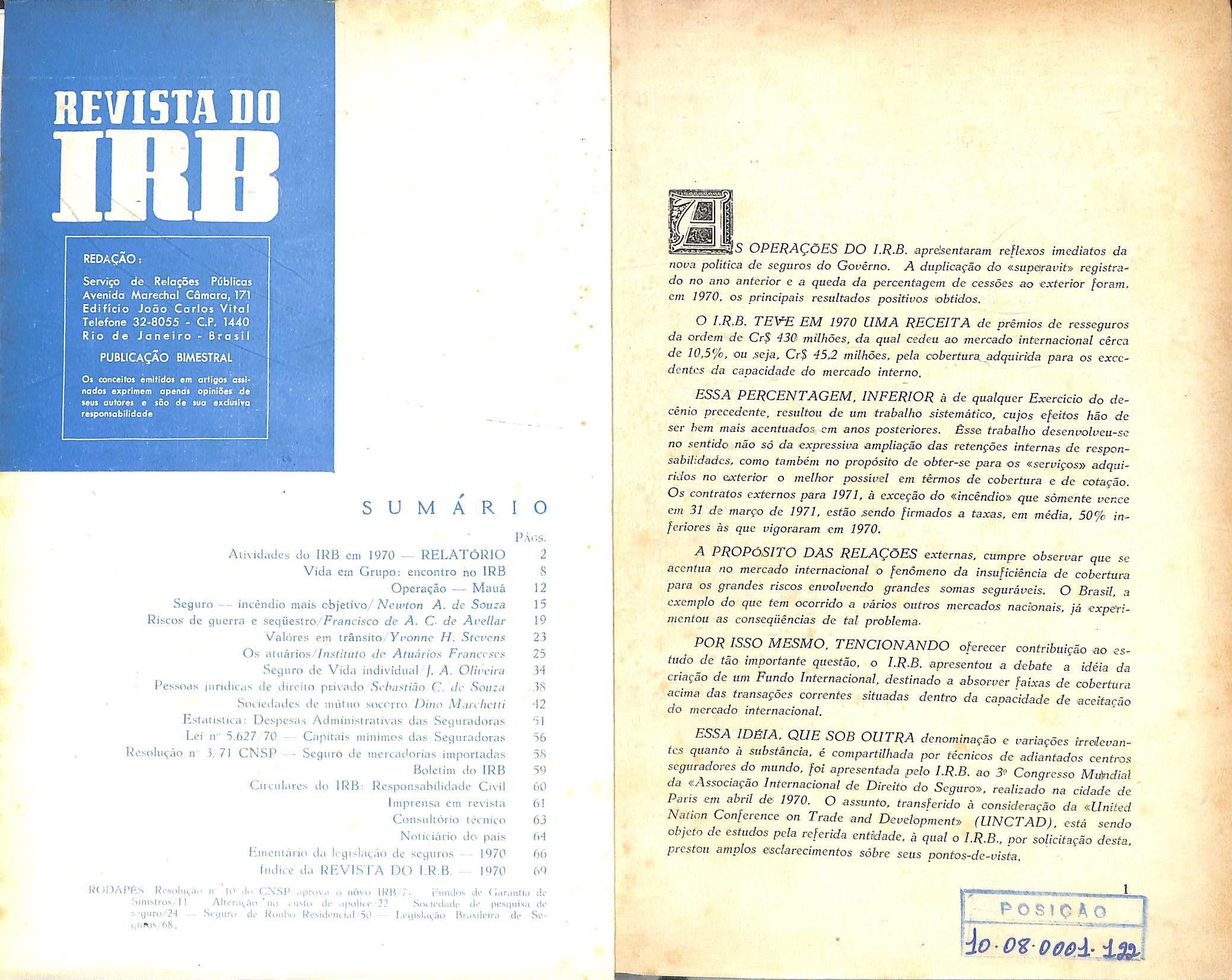 Atividades do I.R.B. em 1970