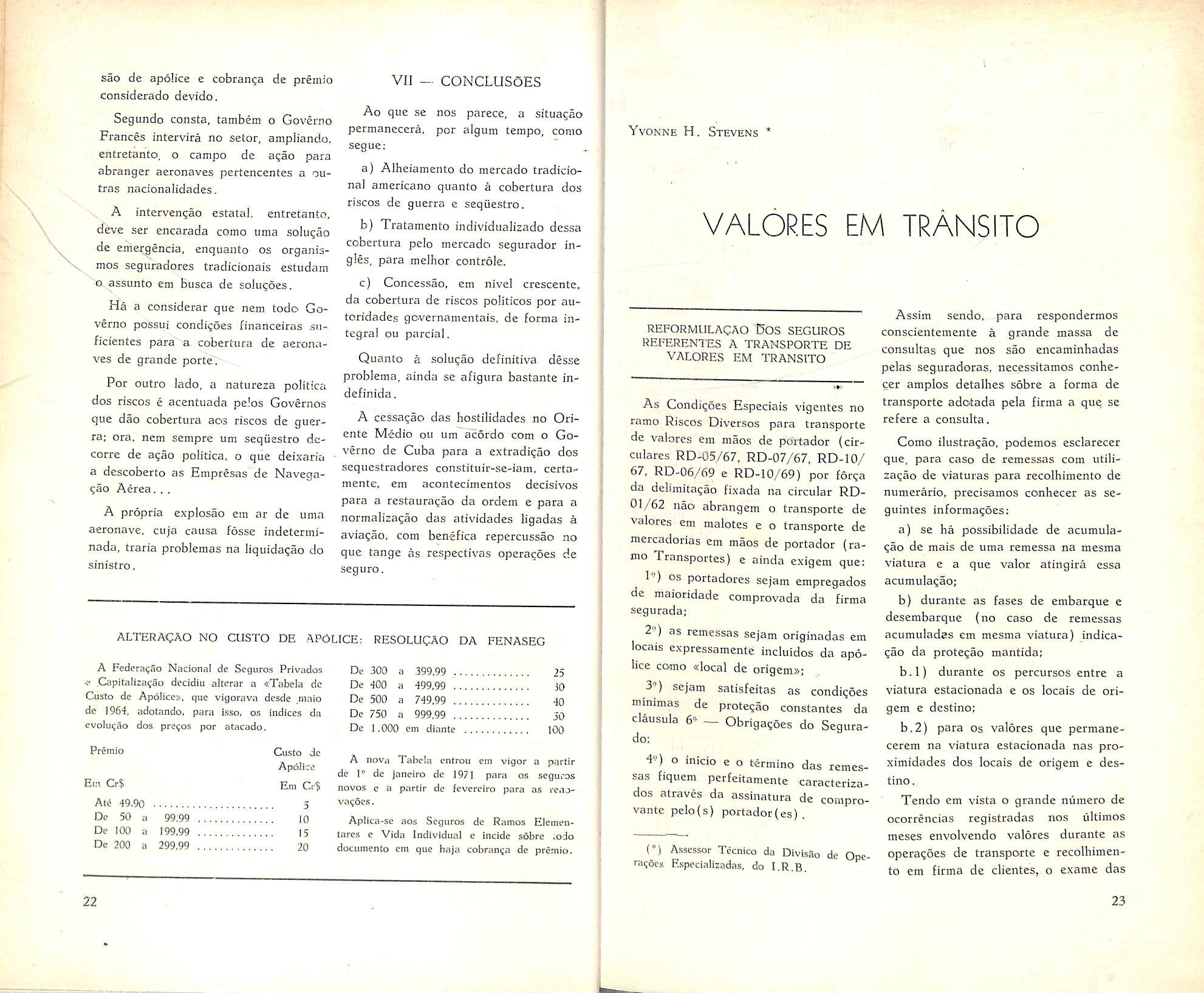ESSA PERCENTAGEM, INFERIOR a de qaalquer Exercicio do decenio precedente, residtou de um trabalho sistematico, cujos e/eitos hao de ser hem mais acentuados cm anos posferiores. £ssa trabalho desenvolveu-se no sentido nao so da expressiva ampliagao das refenfoea internas de responsahilidadcs, como tambem no proposito de obter-se para os eservigos» adquiridos no exterior o melhor possivel em termos de cobertura e de cotagao. Os contratos cxternos para 1971, a excegao do «mcendio» que somente vence em 31 de marco de 1971, estao &endo firmados a taxas, em media. 50% inferiores as que vigoraram em 1970.