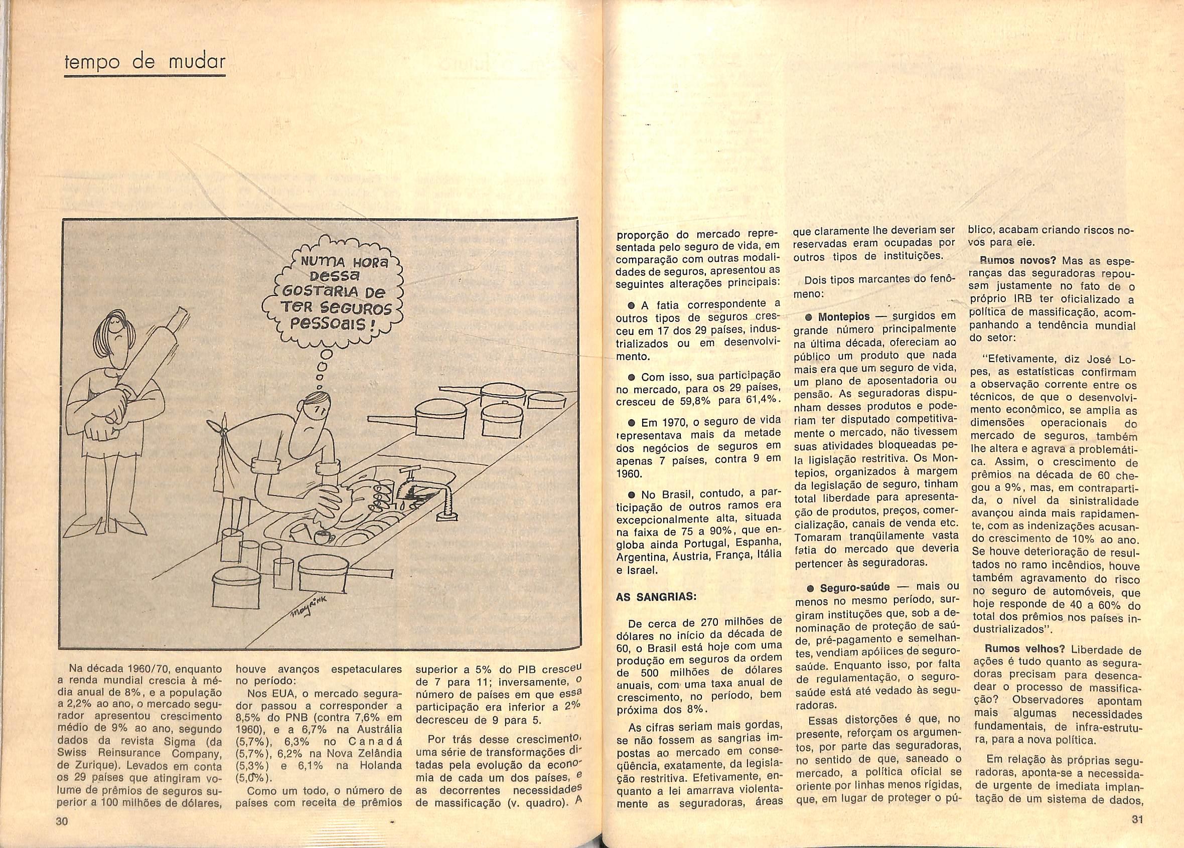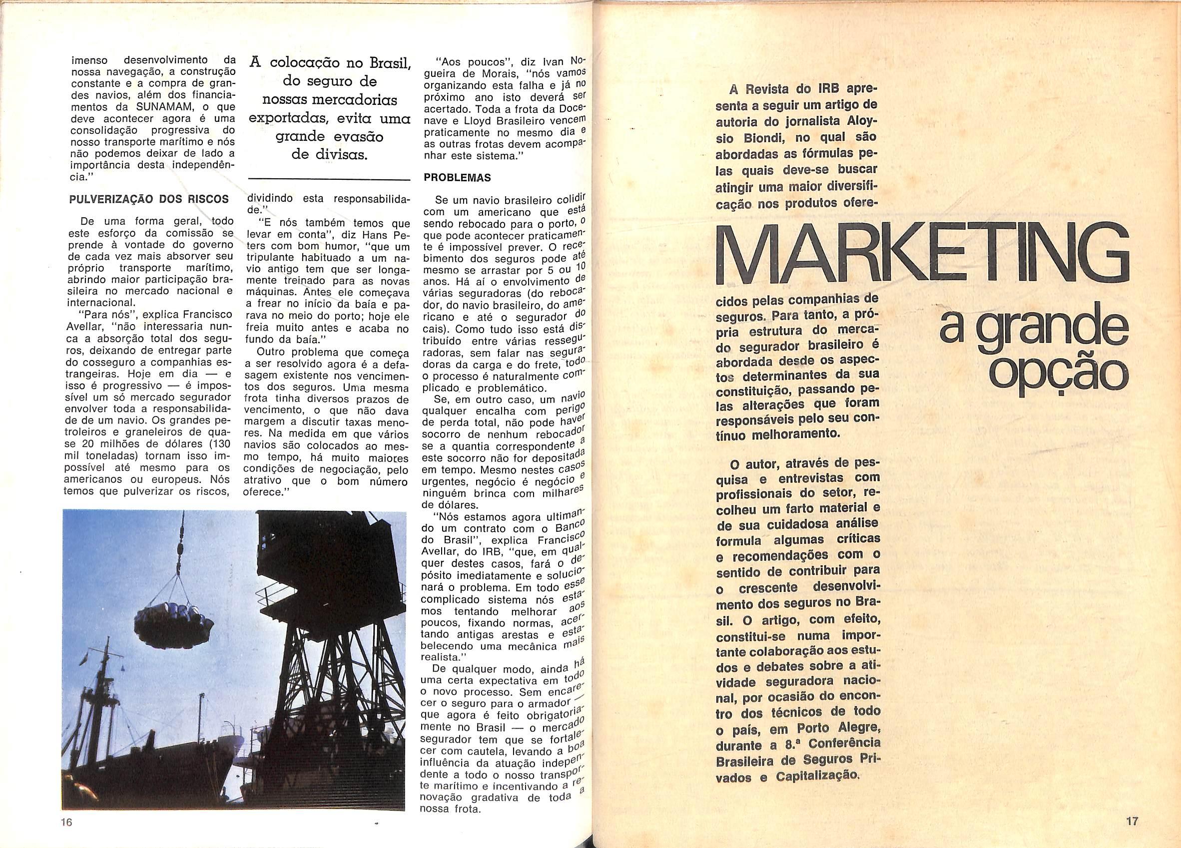 A solucao dos problemas de "marketing" da atividade seguradora nacional figurou entre as cogitagoes do Governo Federal, ao ser planejada e divulgada, em outubro de 1970, a nova politica do setor.