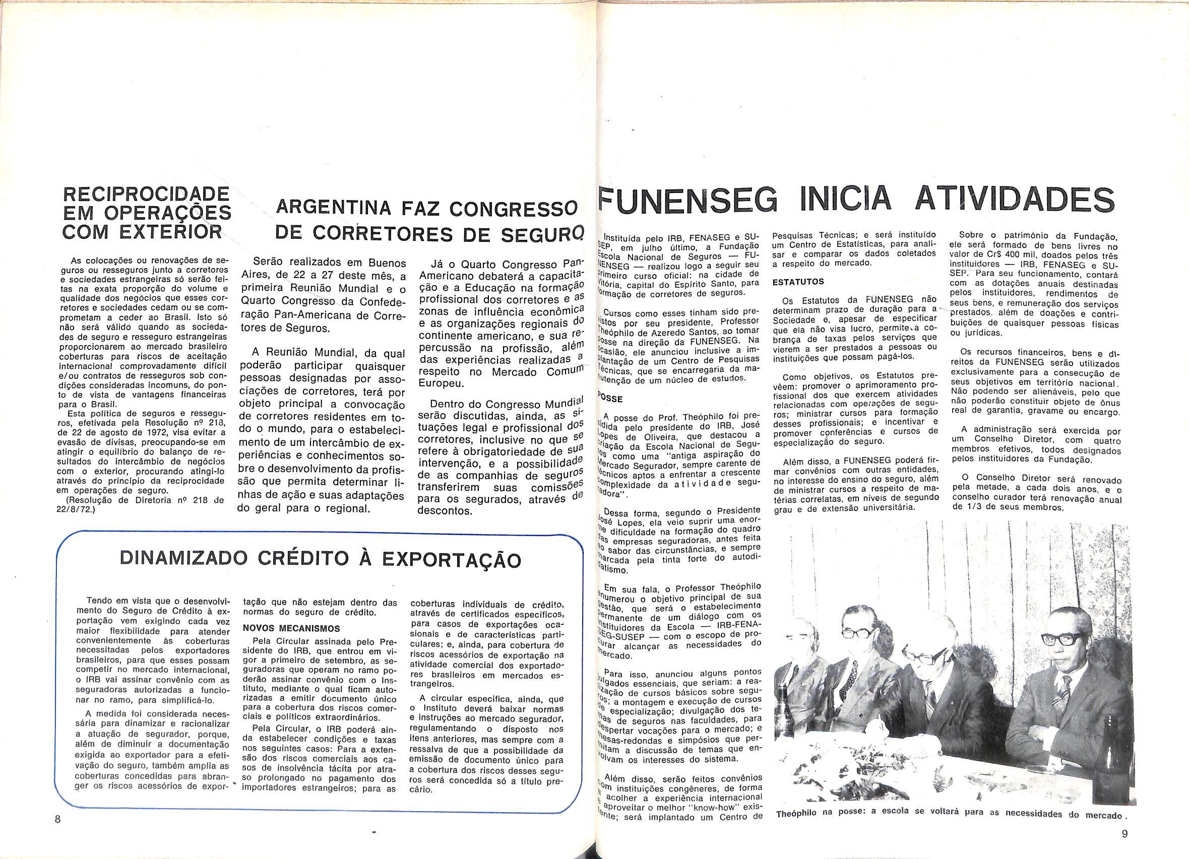 E com grande satisfagao ® e imenso prazer que escrevo para a Revista do Institute J® Resseguros do Brasil, s0f^ sombra de duvida uma excele^' te publicagao. 6 uma revist® dinSmica, objetiva, de exceP' cional conteijdo, moderna ® muito atraente. Meus parab^n® aos diretores desta revista.