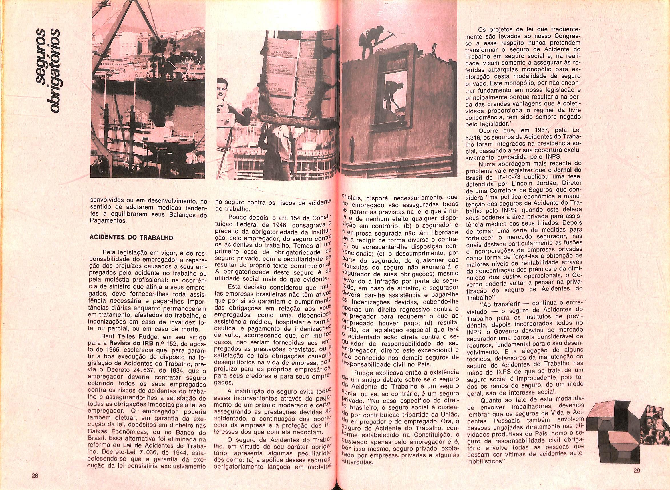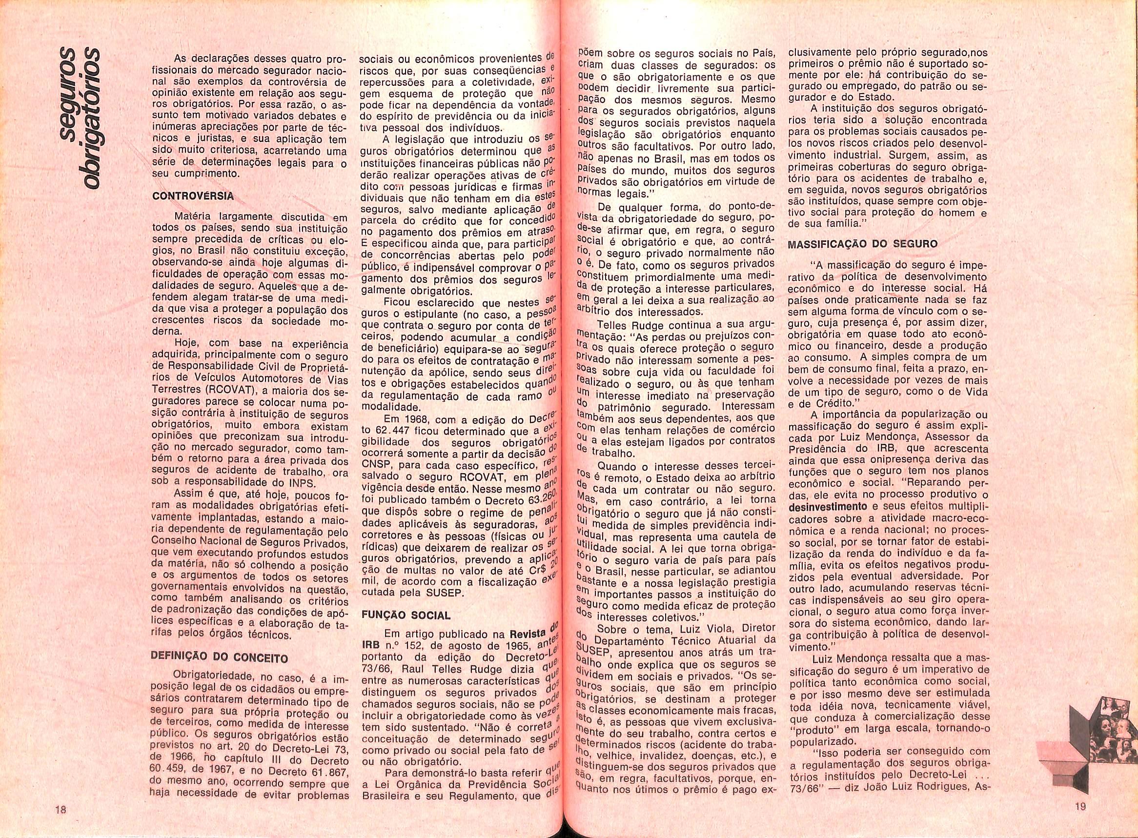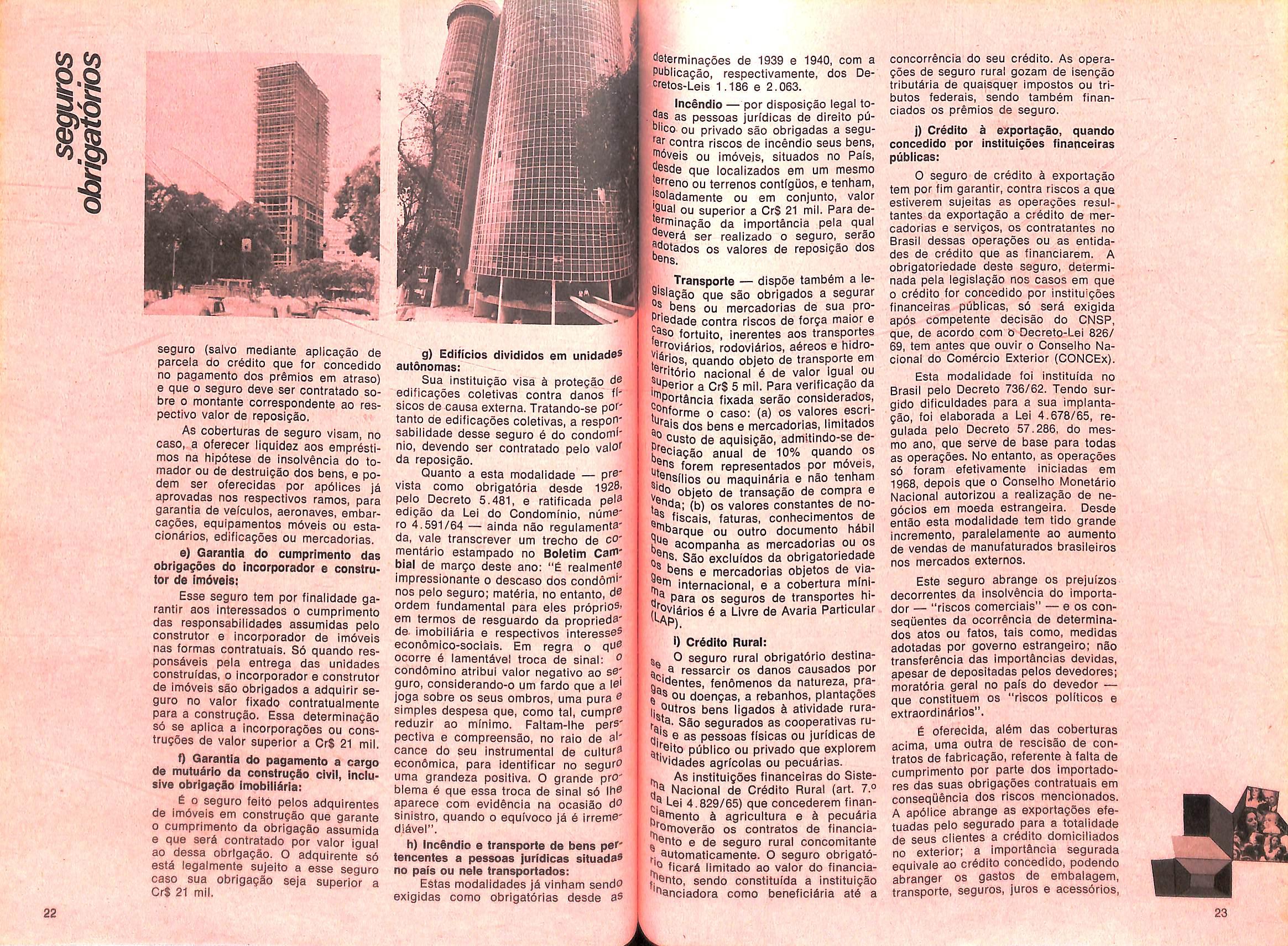 difícilconvencer o rlZõe8 °ou o corretorquantoàs /tia O dessainesperadaexclusão. ,J.°dasc mesmoqueexcluirotelhariQ de Aasasnacoberturade"Que r/'naiscronaves"...Afinal,quedali11iPaPrementeatemernoscasos ellt(la,scto�eveículosterrestres? t�lora/'assi_m,omaioratrativoa tressantnad1sseminaçãode ttm indo total do faturamento, o rner� llo de e epouquíssimoconhecido atingiria, ao final de 1974, a clfrl\ r rlcor,,. seguro. bilhão e 430 milhões de dólnrer�� ll�º se0e, então,queseumaedificaseja, perto de 9 bilhões de cruzelp1t llQblicQuradasituar-sejunto à via que corresponderá, aproximadarrie1,ç 1/10 deºs d�nos quesofrerporimmeta prevista no inicio desse tra llons se eyeiculosestarãocobertos. <Tabela "A"). ,i llei11tura�ivesseemcentrodeterreresei·, IQ Q 1lies 0, adanificaçãodomttro Nessa hipótese, o volume de 4 5e: 1>).' <'lce macausanãoestarácoberdo ramo vida previsto para 197oOJY "1elliiotta-se.pelo mesmo custode tua.ria por volta de 1 bilhão e 2pi t/llt0 ' 0 riscomaior(desmoronalhões de_ cruzeiros (aproxlnlad11 1t04tu,-/<trcial outotal,abalodees200 mllhoes de dólares). 1 tf �/ (i;i�etc.)erejeita-se O riscomeEste montante de reservas foitl léc �"«rofZes restauraçãodetrecho mado prevendo-se, de início, urn11 5� ;1�0. e , o . quenãoparece_nada preferência do consumidor pelO5 p04- qu�1e11i d"mmtomenoscomercial. ros em grupo, através dos qua.15 05fIQ� Q clü sso, aexclusãoatualco1:· ser levado à compra dos produt� �or refe;J!da� e incompreensões: :,iao bres - as apólices indlvldua15· ll� �i,11lla,8e en�_aexpressaaportoes. que são autênticos planos d� Pº ll'.! �e/'1!.t0 d Vahdo,portanto, o e77:tenças a longo prazo, se constitue tt'� e% Clu3i equeumimpactodtre�a grandes geradoras de reservas t" 0 erlo varnente nos portõesestaria cas, cujo volume, com o correr c:I�� ºb,. Si· po, obedecendo a lei matemát1põi'� f"t>i/futi.Ples detalhedafranquia cresc�ento_a taxas compostas, eS ¾1-• _cru1ªi mínimadeCrS 1.000,0Ç atingir índices análogos àquels, Co'l'ÍtcQ �etros),nãodeve por siso exemplos citados de outros palse5 ' ?o(,-ciri� 0 dispositivo.Antes,pelo