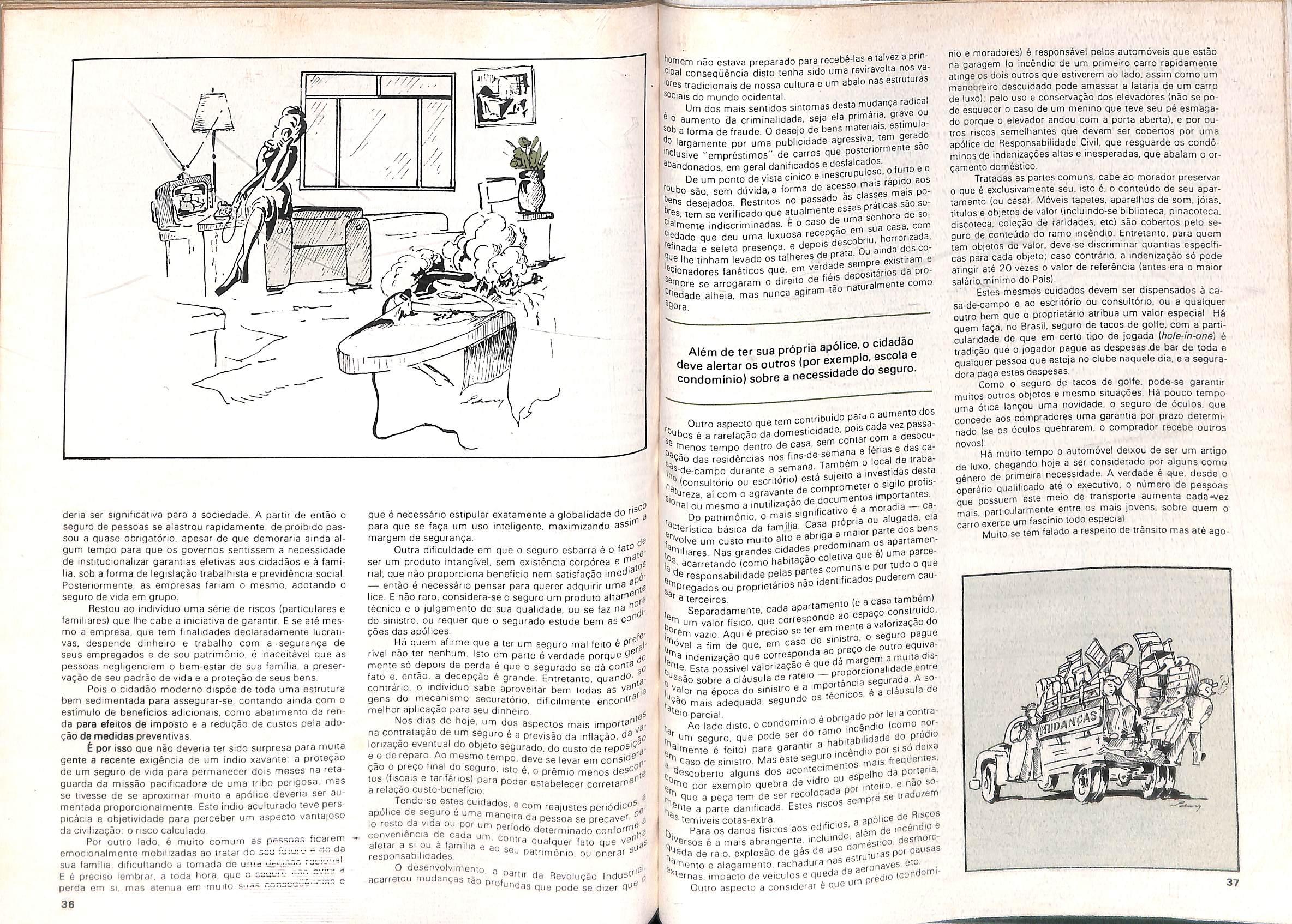As dificuldades do seguro obrigatbrio para proprietbrios de veiculos, comuns alibs em varies paises, deverao ser solucionadas com a reformuiagao profunda feita pelo Conselho Nacio nal de Seguros Privados. modificando as bases da apblice, que passou a ser de danos pessoais, seja causados a lerceiros, seja aos prbprios ocupanies dos autombveis. Foi feito tambbm reajuste no oremio e na importancia segurada, assim como no mecanismo de pagamento (agora feito de imediato pelo IRB e debitado "b seguradora) mesmo quando 0 veicuio naofor identificado,