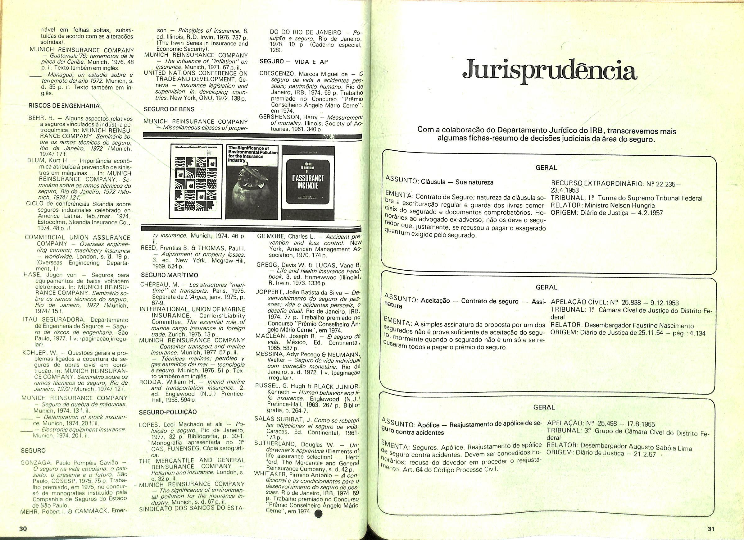 Compete ao IRB estabelecer e fome"' tar 0 intercamblo com organizagdes nS' cionais e internacionais do seguro e rs®' seguro. bem como com instituigdes qualquer outra natureza, visando 3" aperfeigoamento tecnico, juridico e ministrativo das operacdes de segurO^ (Dec. n° 60.460/67. Art. 76,alinea m)-