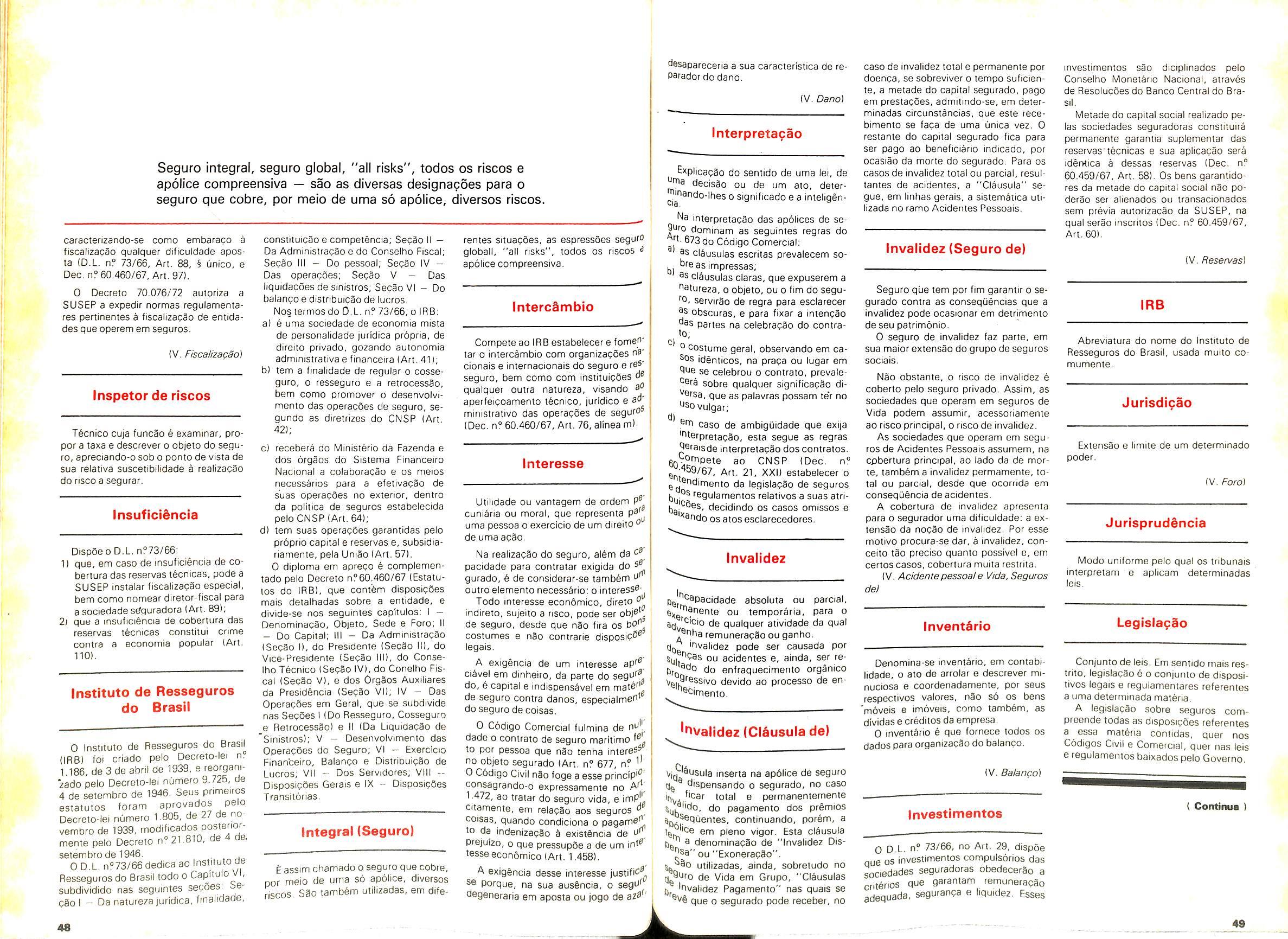 A iegisiagSo sobre seguros compreende todas as disposigQes referentes a essa mat6ria contidas, quer nos Codigos Civil e Comercial, quer nas lels e regulamentos balxados pelo Governo.